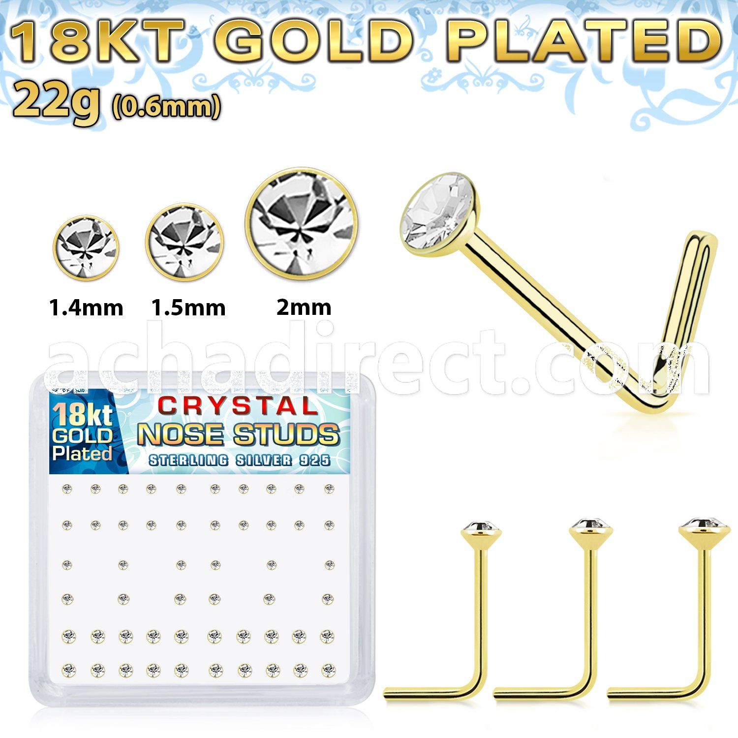 18k Gold Plated Silver Nose Studs with Crystal Tops in Box
