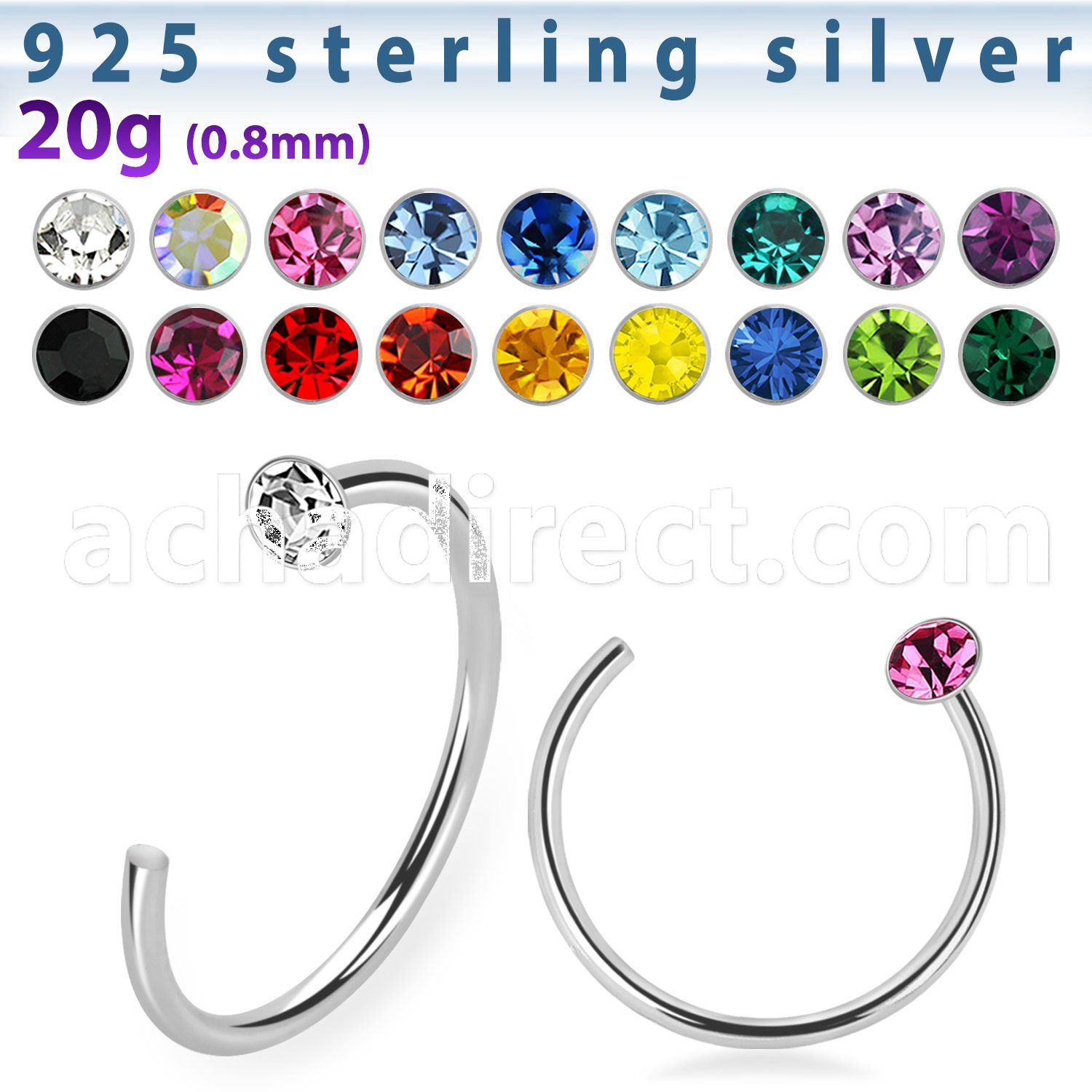 Sterling Silver Nose Hoop with Crystal Top