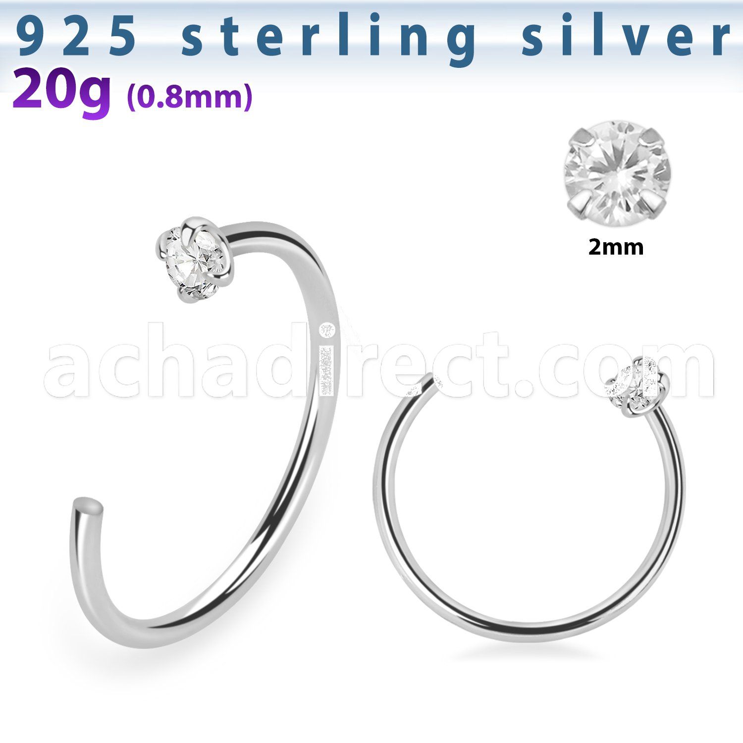 Sterling Silver Nose Hoop with Clear CZ Stone