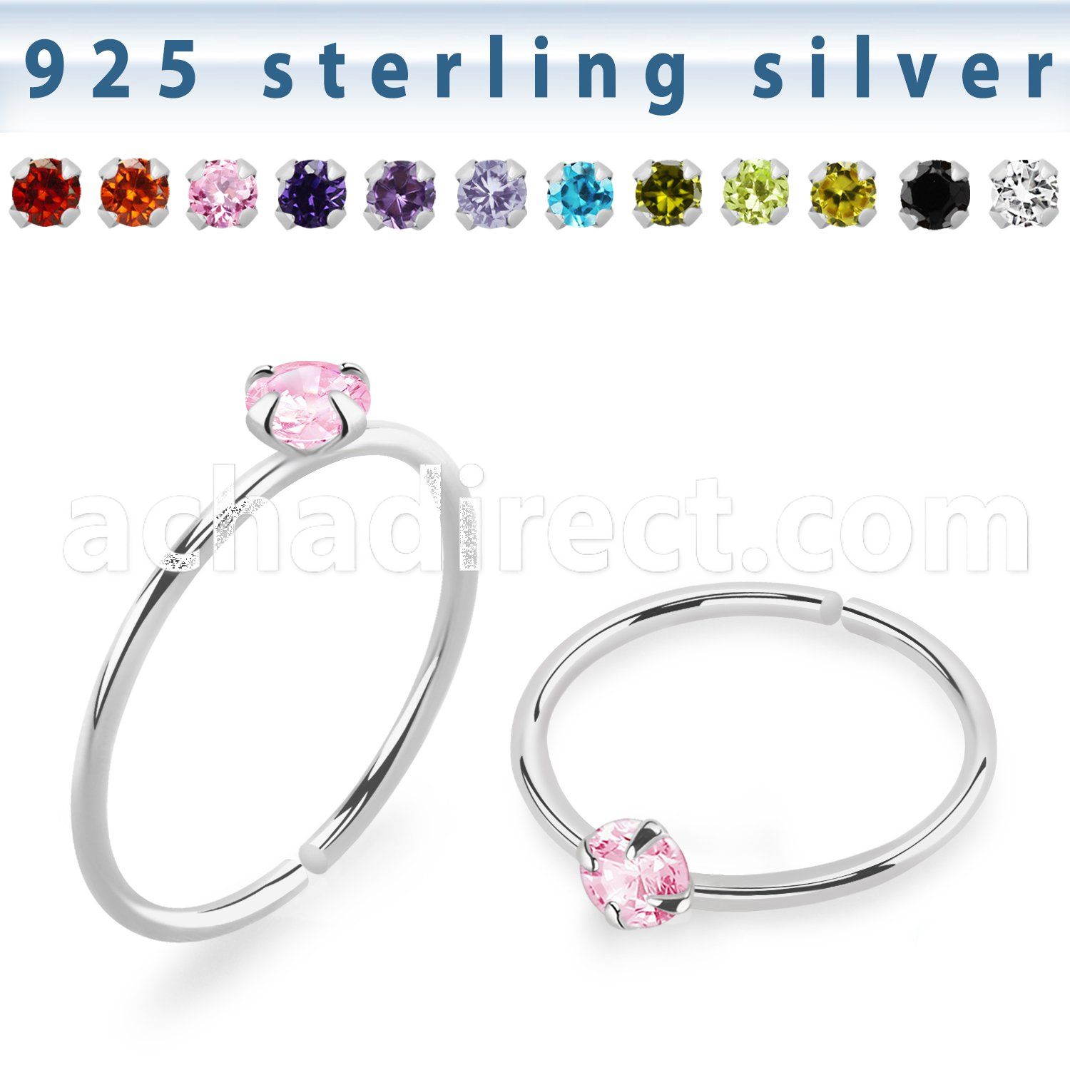 Silver Seamless Nose Ring, Prong Set Round Color CZ Stone