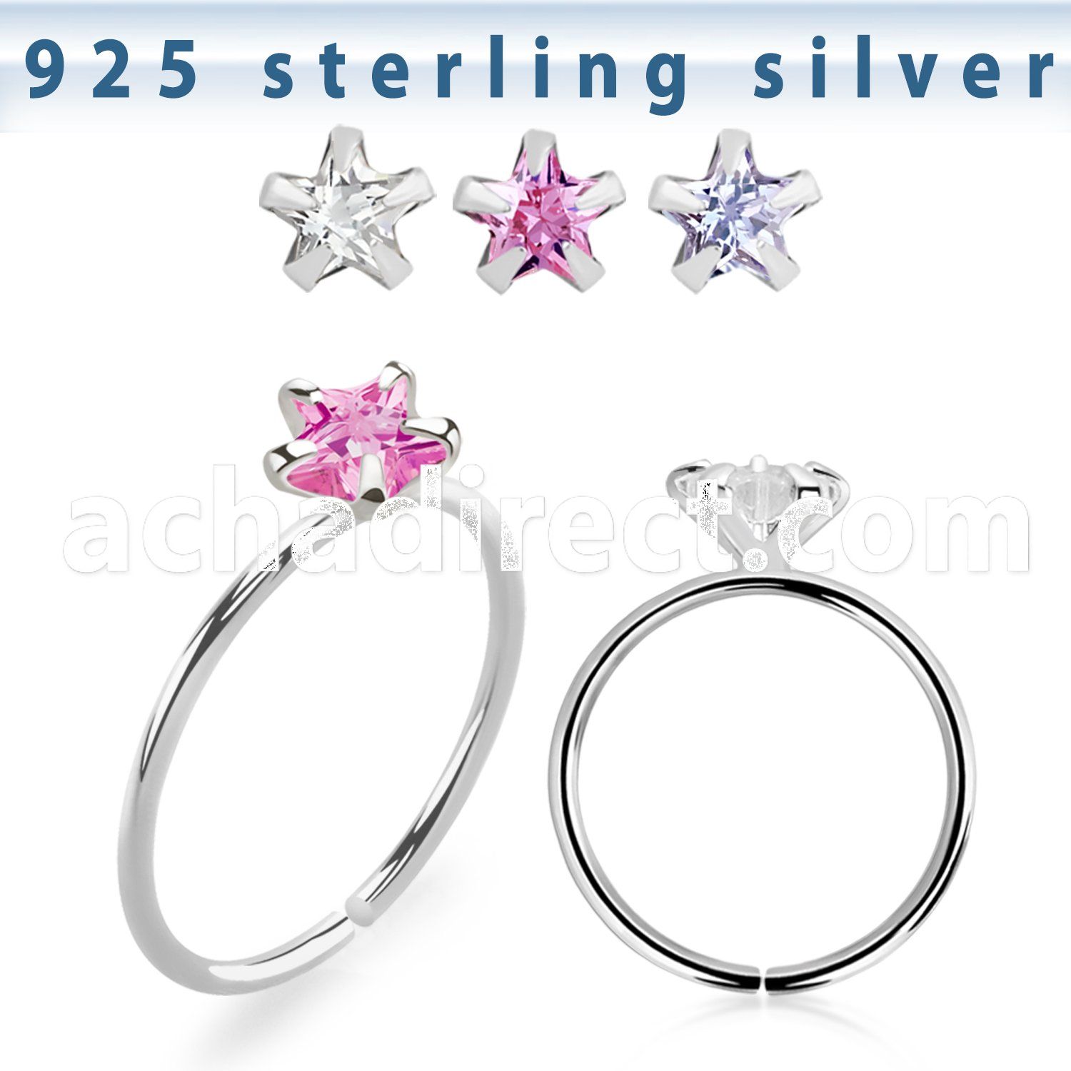 9. aghsm22 925 silver seamless nose ring color crystal star