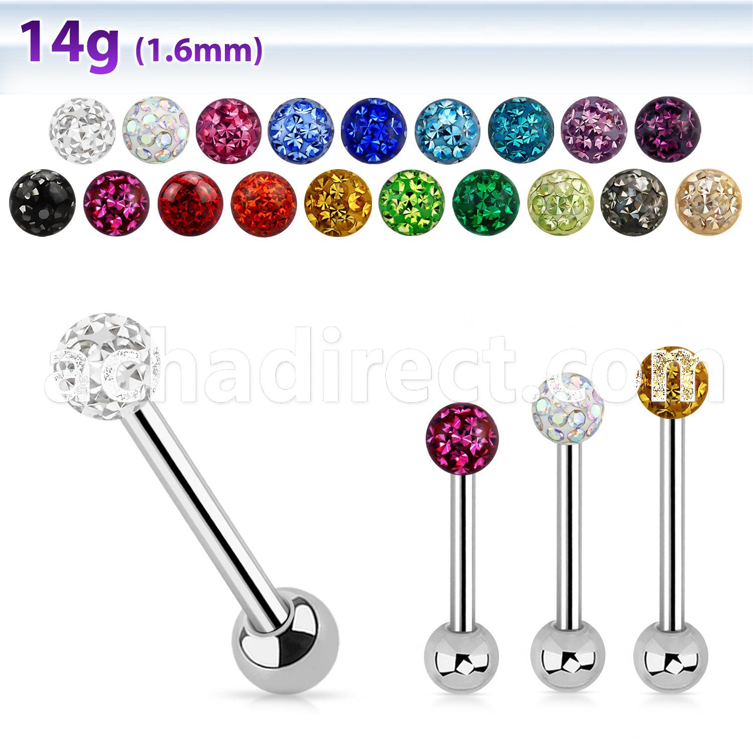 2. bbfr5 316l steel tongue barbell with 6mm ferido crystal ball