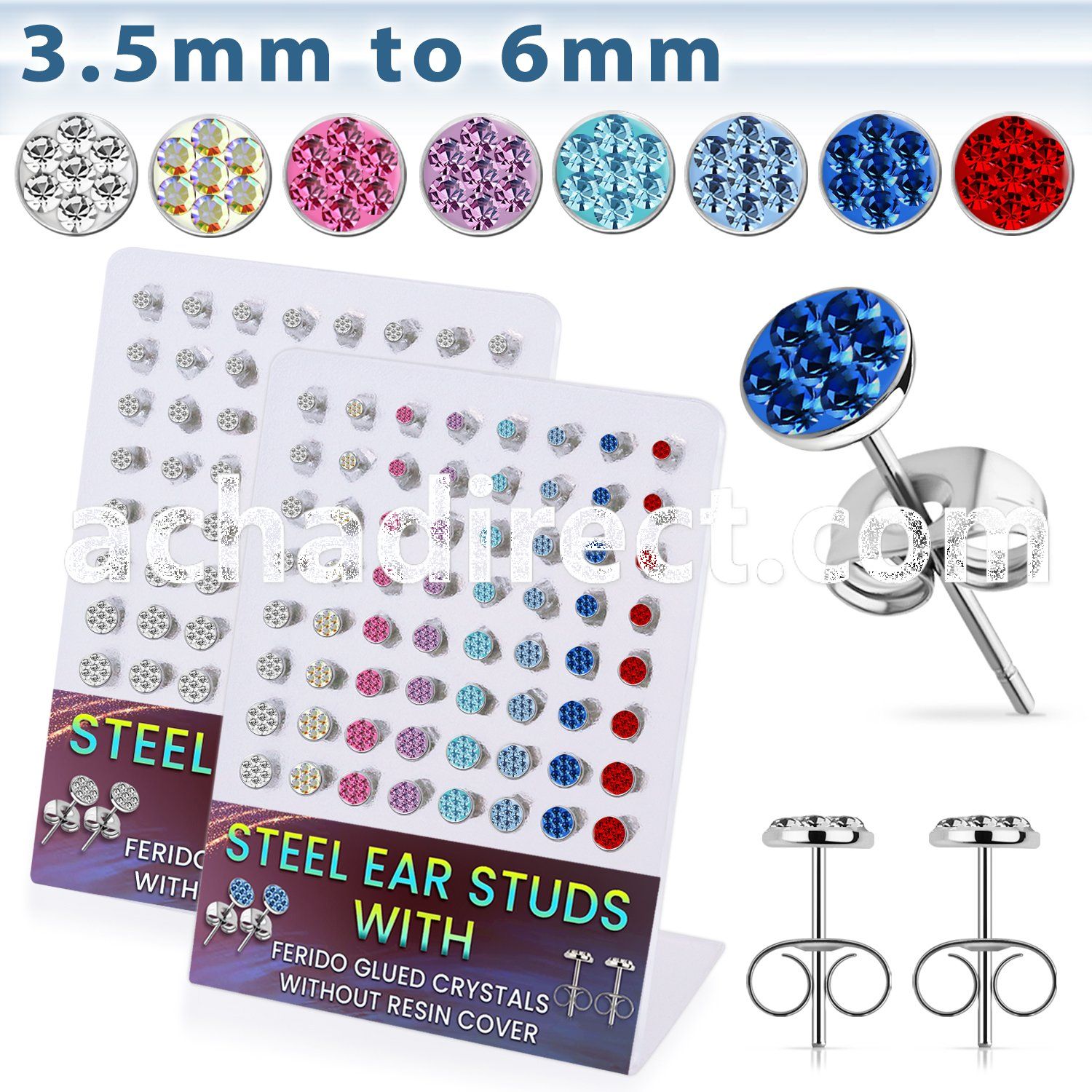 Steel Ear Studs with 3.5mm to 6mm Ferido Crystals, 32 Pairs