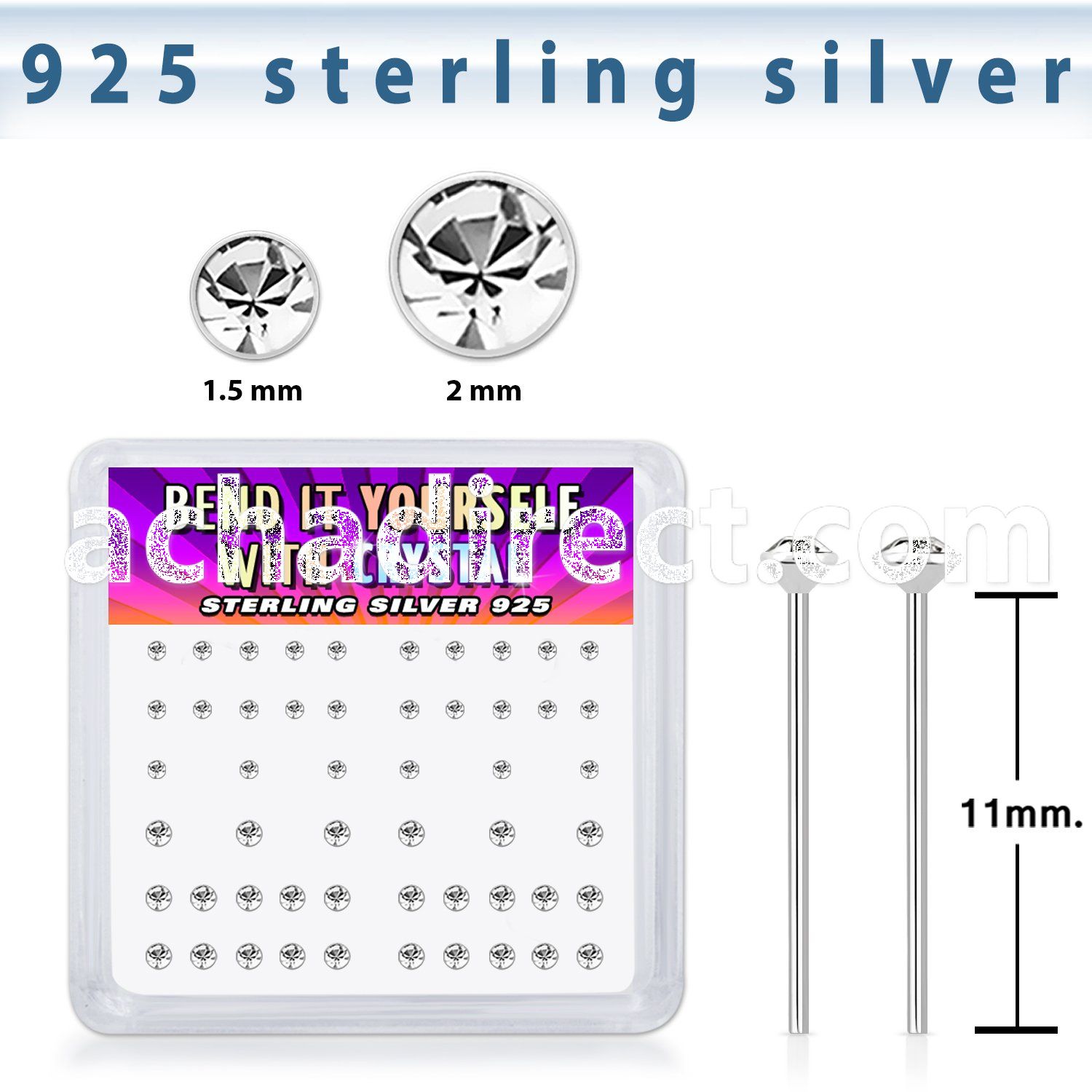 3. ny19cx box of silver bend it nose studs w 2 5mm clear crystals