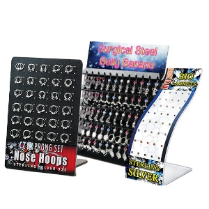 Samolepky na piercing velkoobchod stojanech a krabičkách na tělové piercing šperky lze vyrobit na zakázku pro každou profesionální prodejnu piercingu. Naši designéři na ně mohou umístit loga, názvy, vzory nebo dokonce obrázky. Kromě toho lze tyto piercingové stojany a krabičky naplnit také konkrétními předměty. Kontaktujte nás a proberte s námi své možnosti pro výroba a dodávky.
