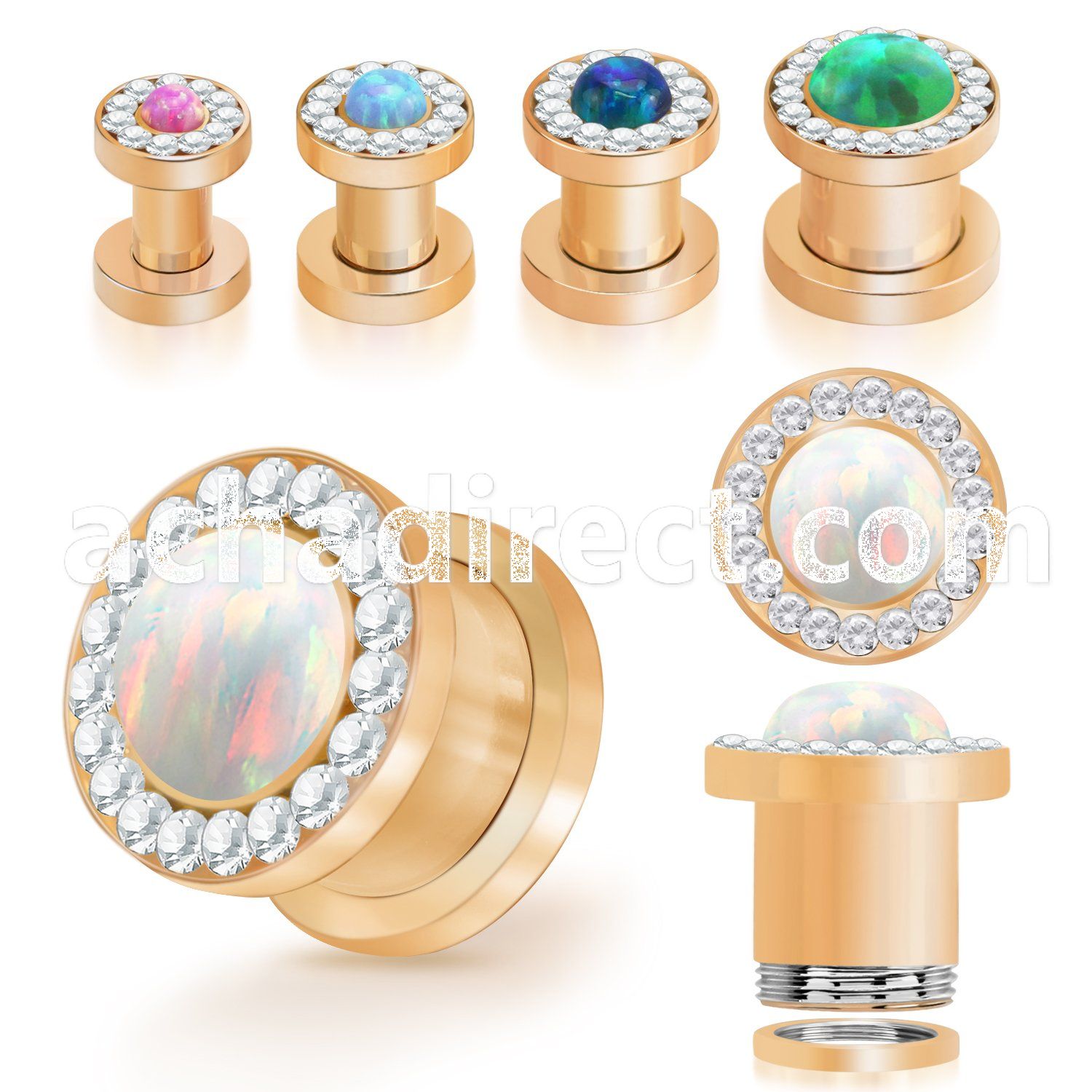 3. ftscpco black plug w crystal studded rim syntetic opal center