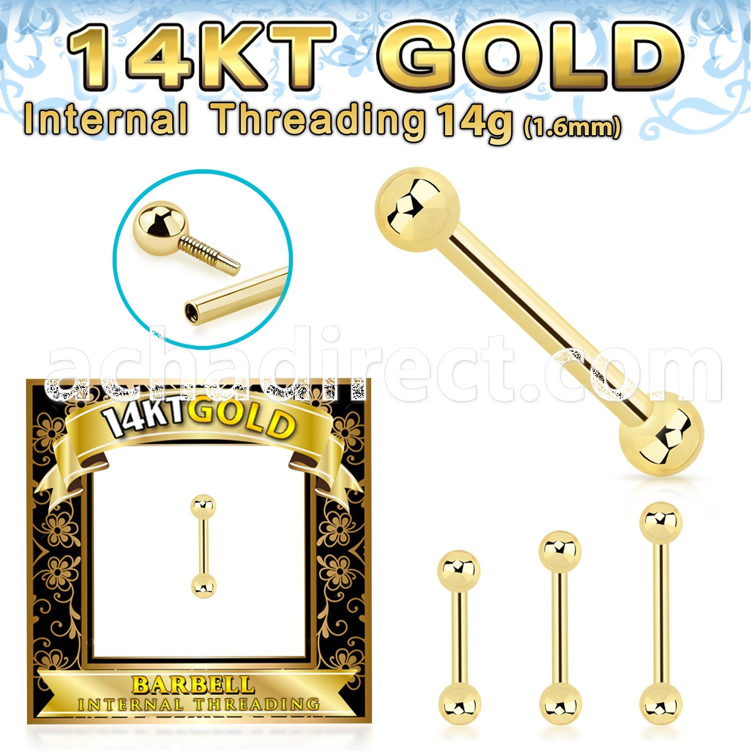 14k Gold Internally Threaded Barbell with Plain Balls
