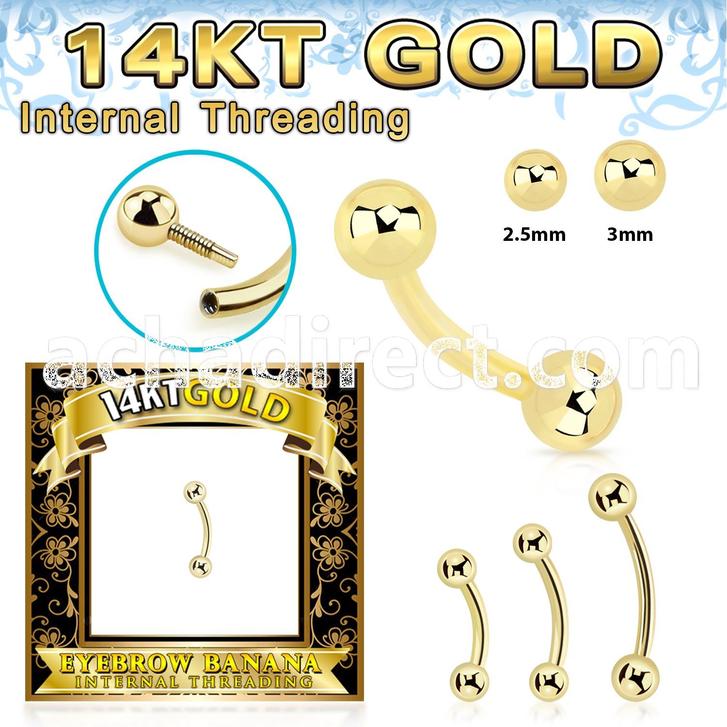 2. gbnb3 14k gold eyebrow banana w thread less push in 3mm balls