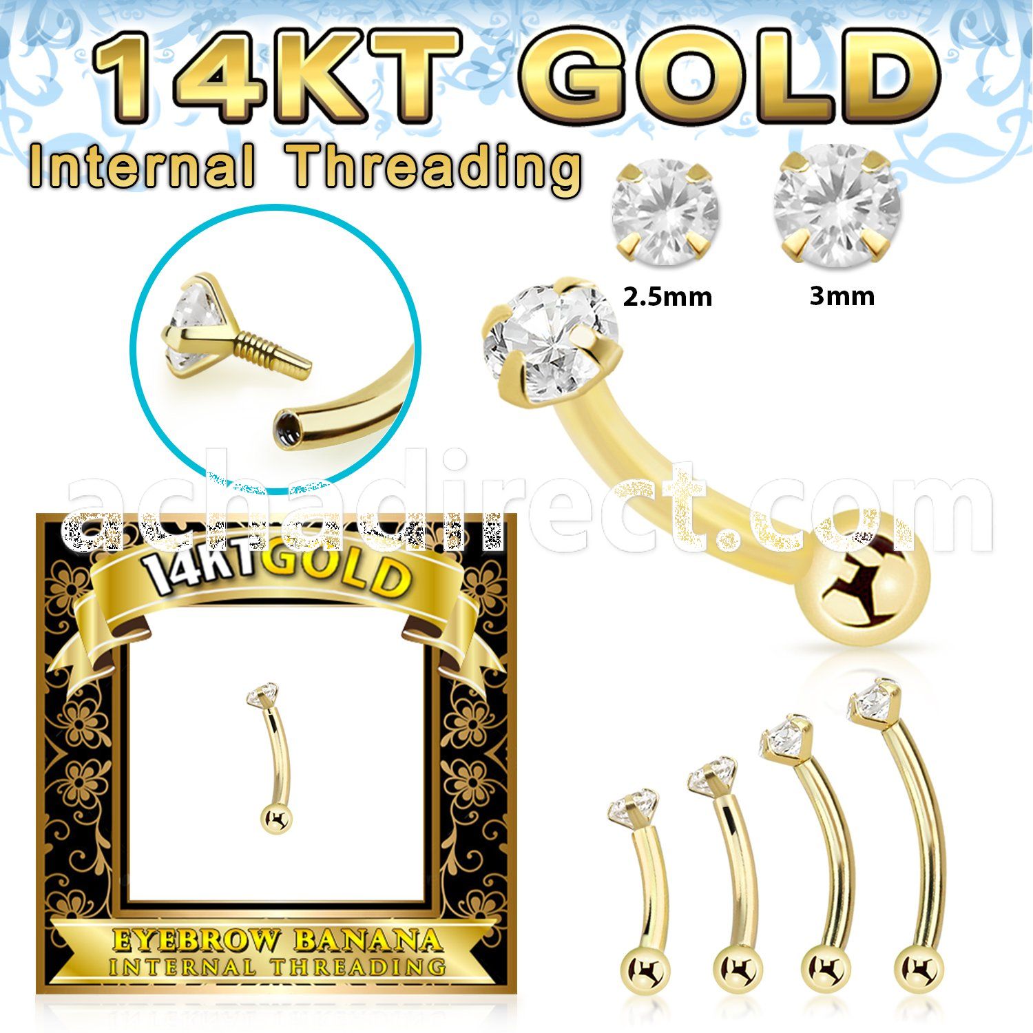 3. gbnz 14k gold eyebrow banana w thread less top w cz stones