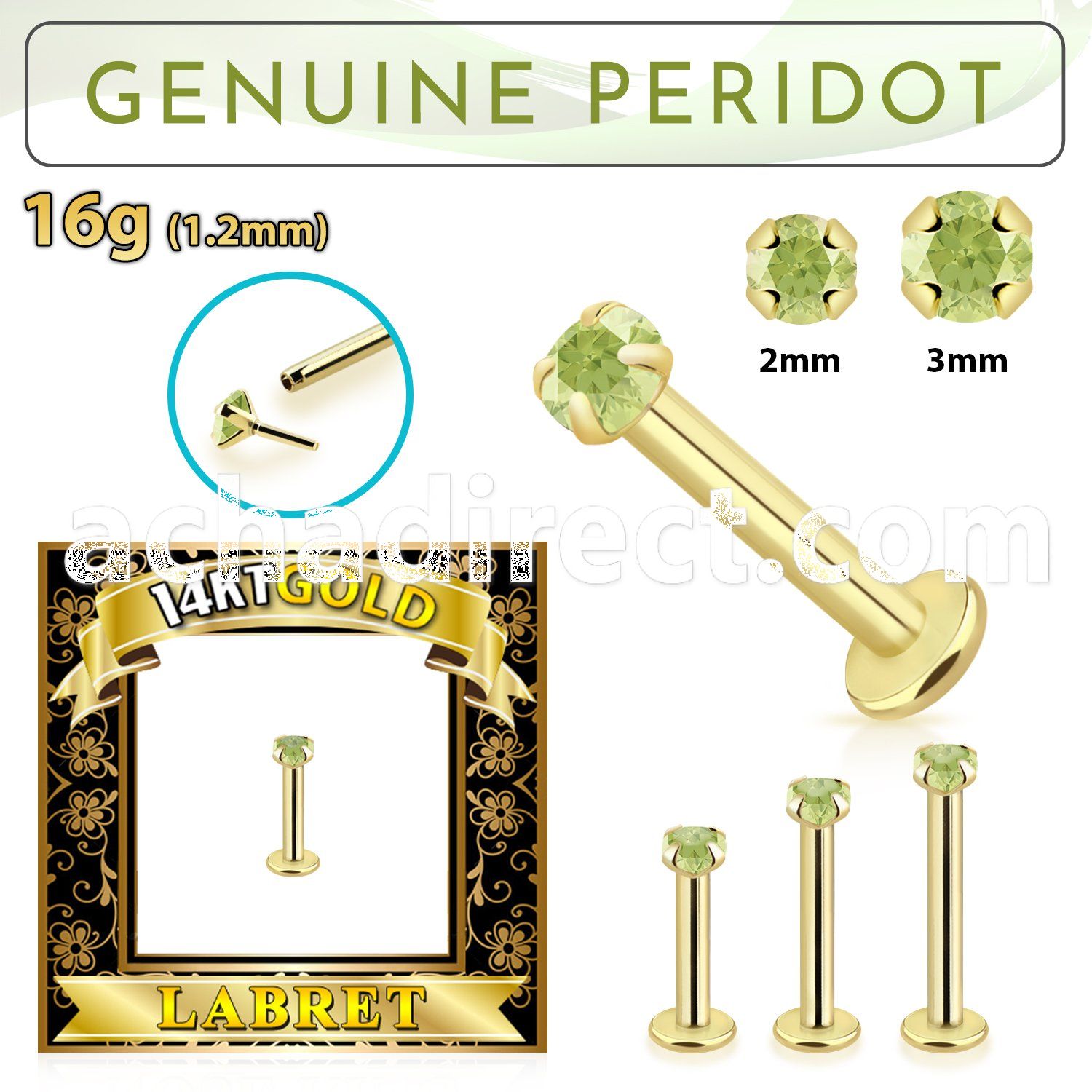 13. bioflex labret with push in 10kt gold w prong peridot