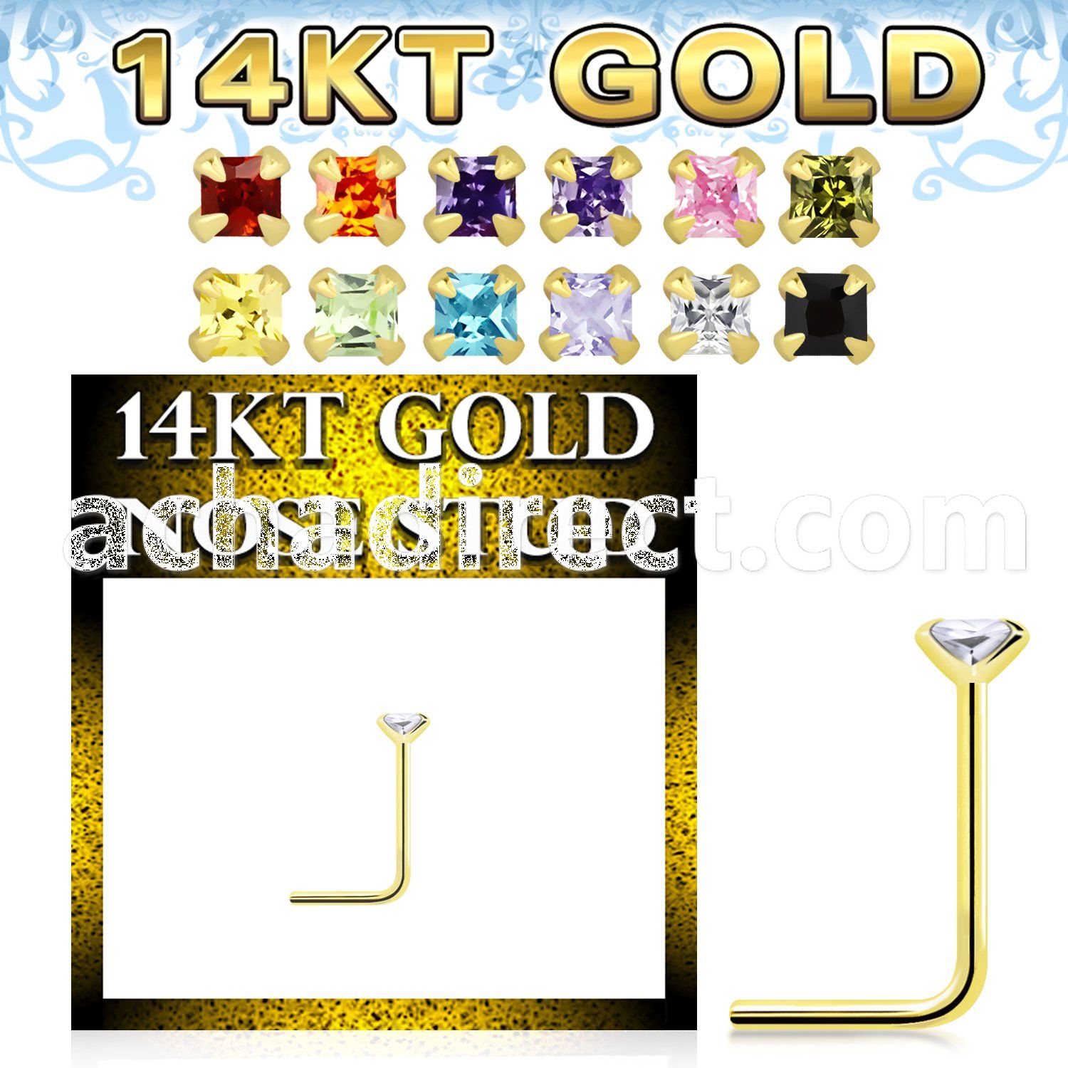 14k Gold Nose Stud w/ Prong Set Square Shape Color CZ Stone