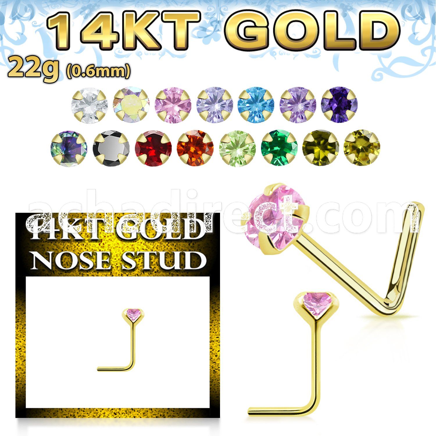 14k Gold Nose Stud with Prong Set Round Color CZ Stone
