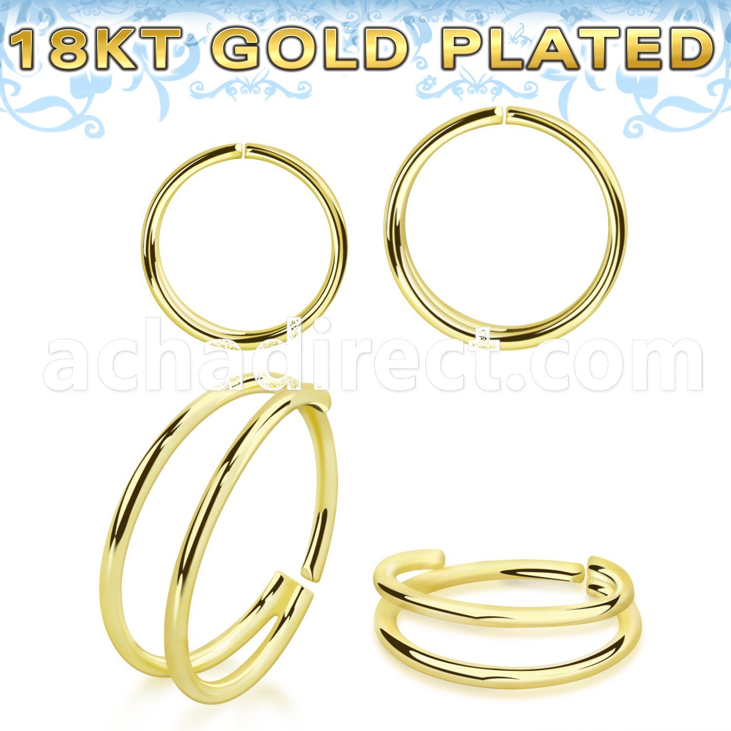 18k Gold Plated Silver Seamless Nose Ring with Double Ring