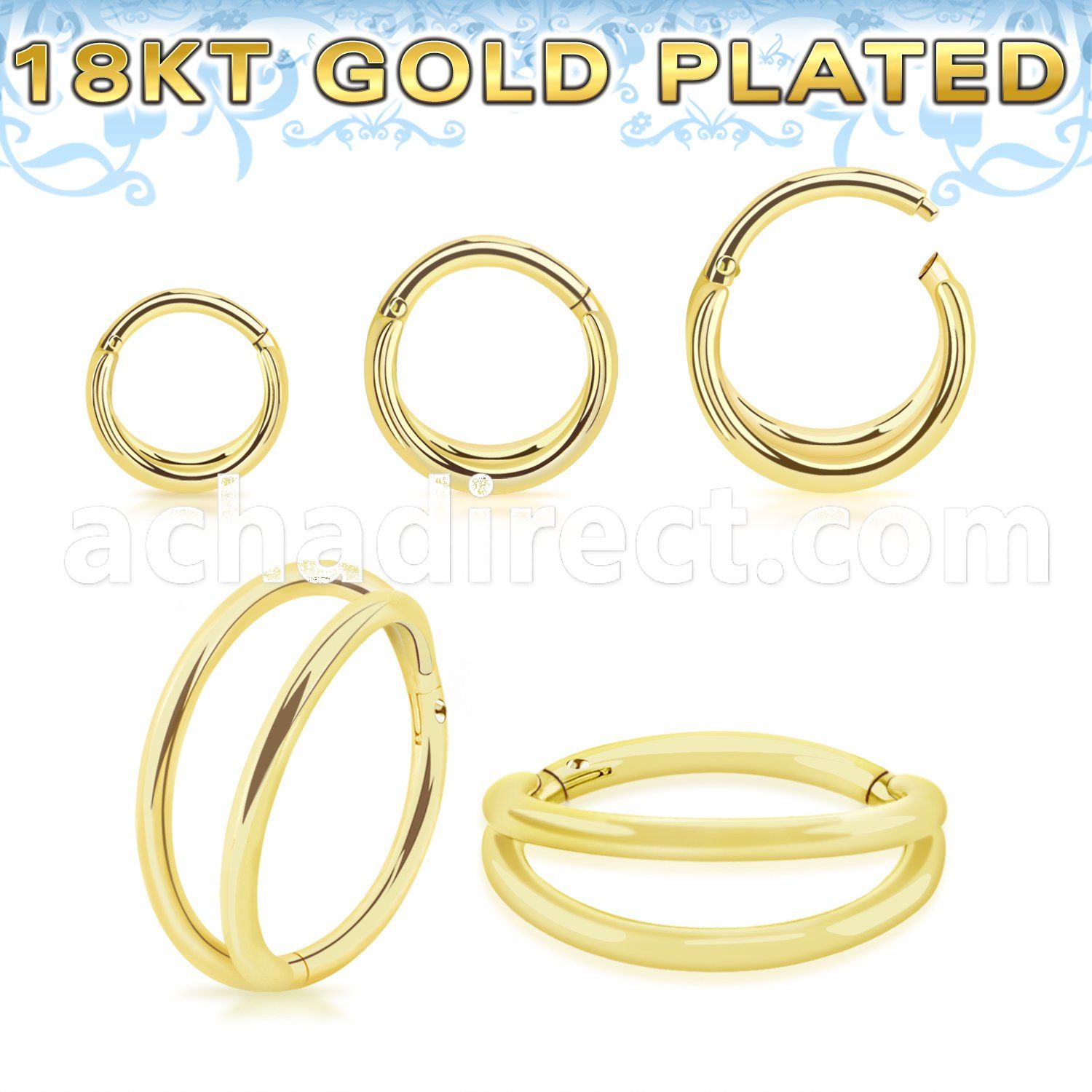 18k Gold Plated 925 Silver Hinged Segment Double Plain Ring