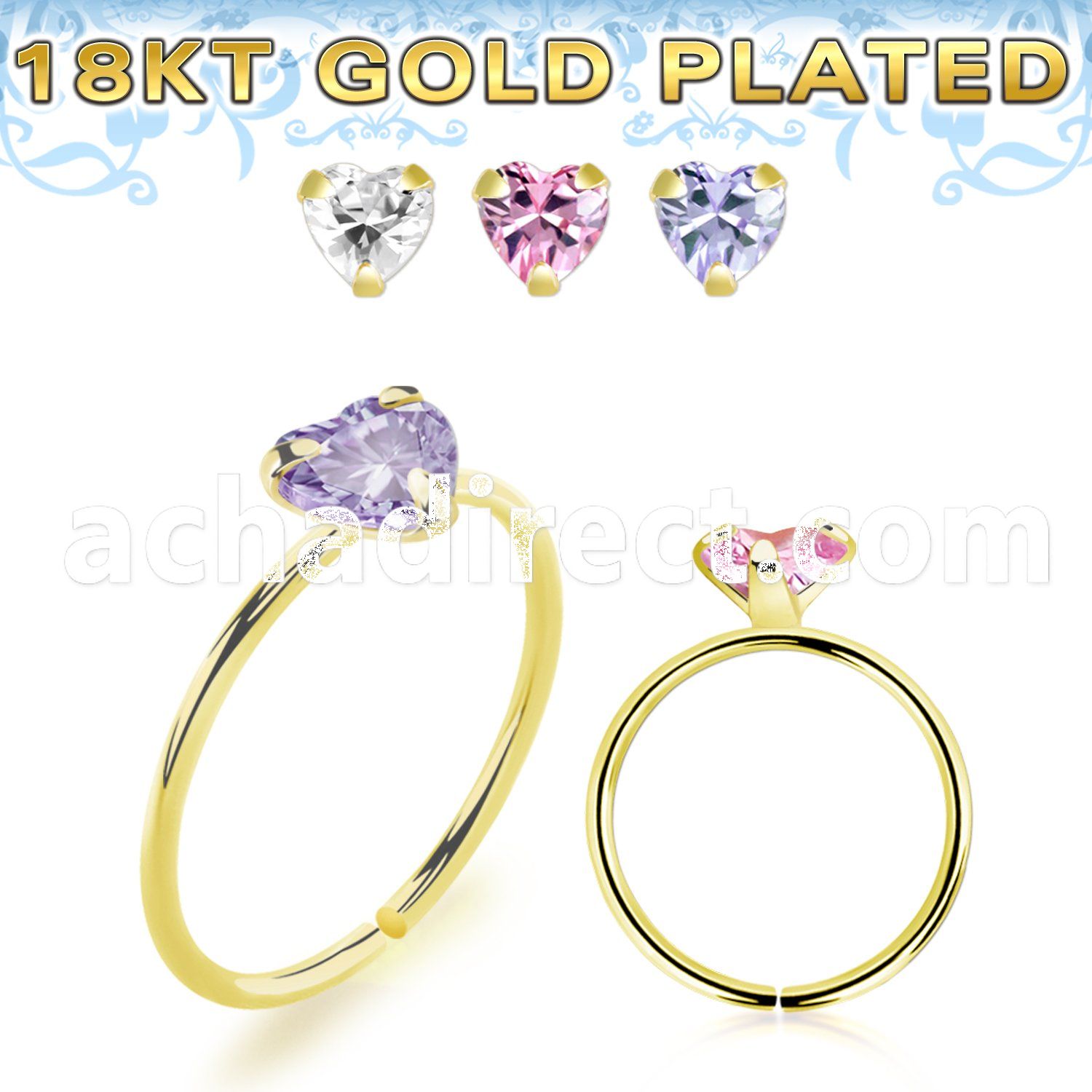 18k Gold Plated Silver Seamless Nose Ring Heart Shape CZ