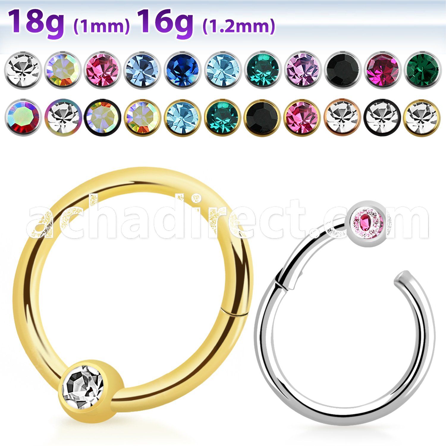 High Polish and PVD Plated Steel Hinged Segment Ring with 3mm and 4mm Bezel Set Crystals