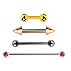 Barbells eru lang algengasta body jewelry notað í ýmis göt svo sem tungu göt og geirvörtu göt. Þessir heildsölu barbells eru seldir í mörgum einstökum stærðum svo sem 4, 5, 6, 7, 8, 9, 10, 11, 12, 13, 14, 15, 16, 17, 18, 19, 20, 22, 24, 25, 28, 31, 32, 35, 37, 38, 40, 42, 45, 48, 49, 50, og 52mm.
