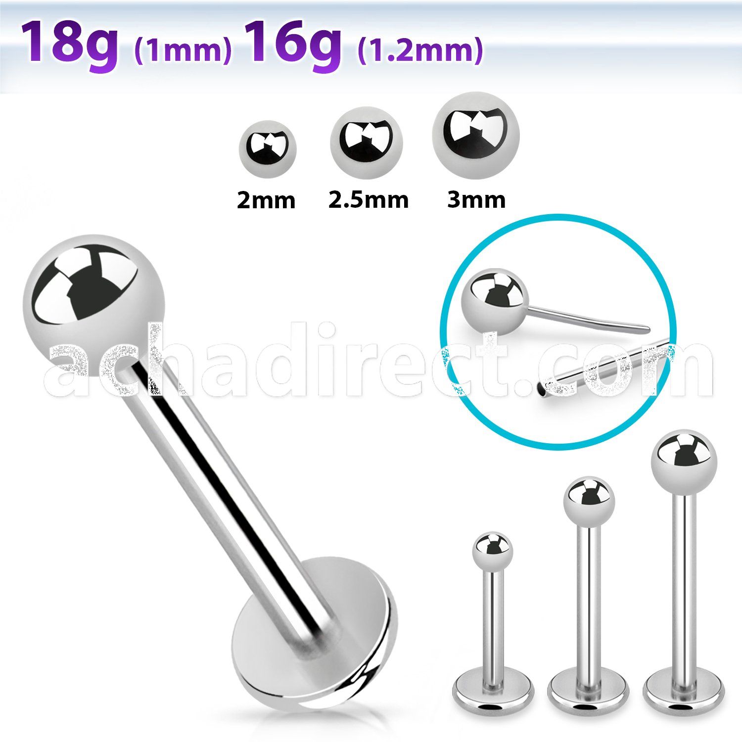 316L Surgical Steel Threadless Push Pin Labret with 4mm Base Plate and 2mm to 3mm Ball