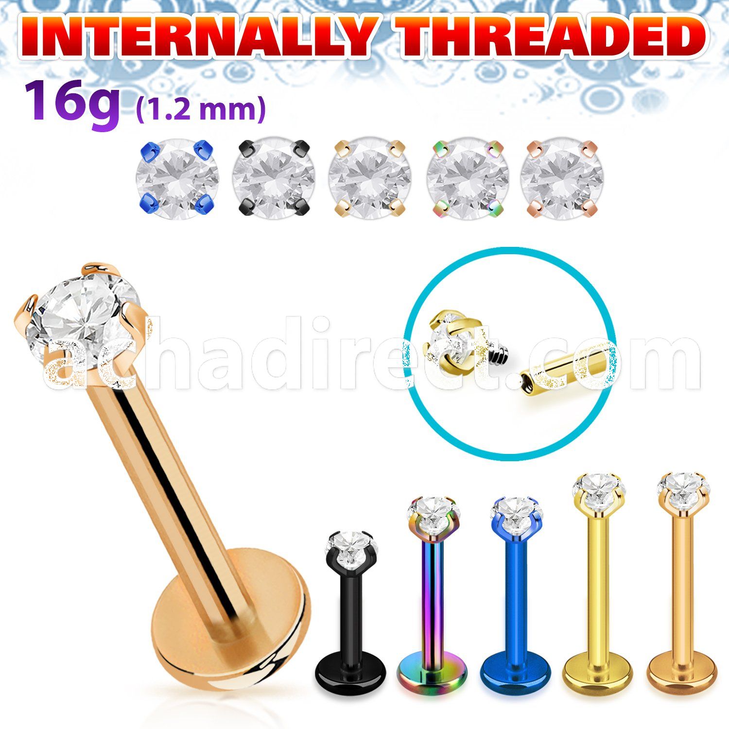 1. lbczin internally threaded steel labret w upper 2 5mm cz stone