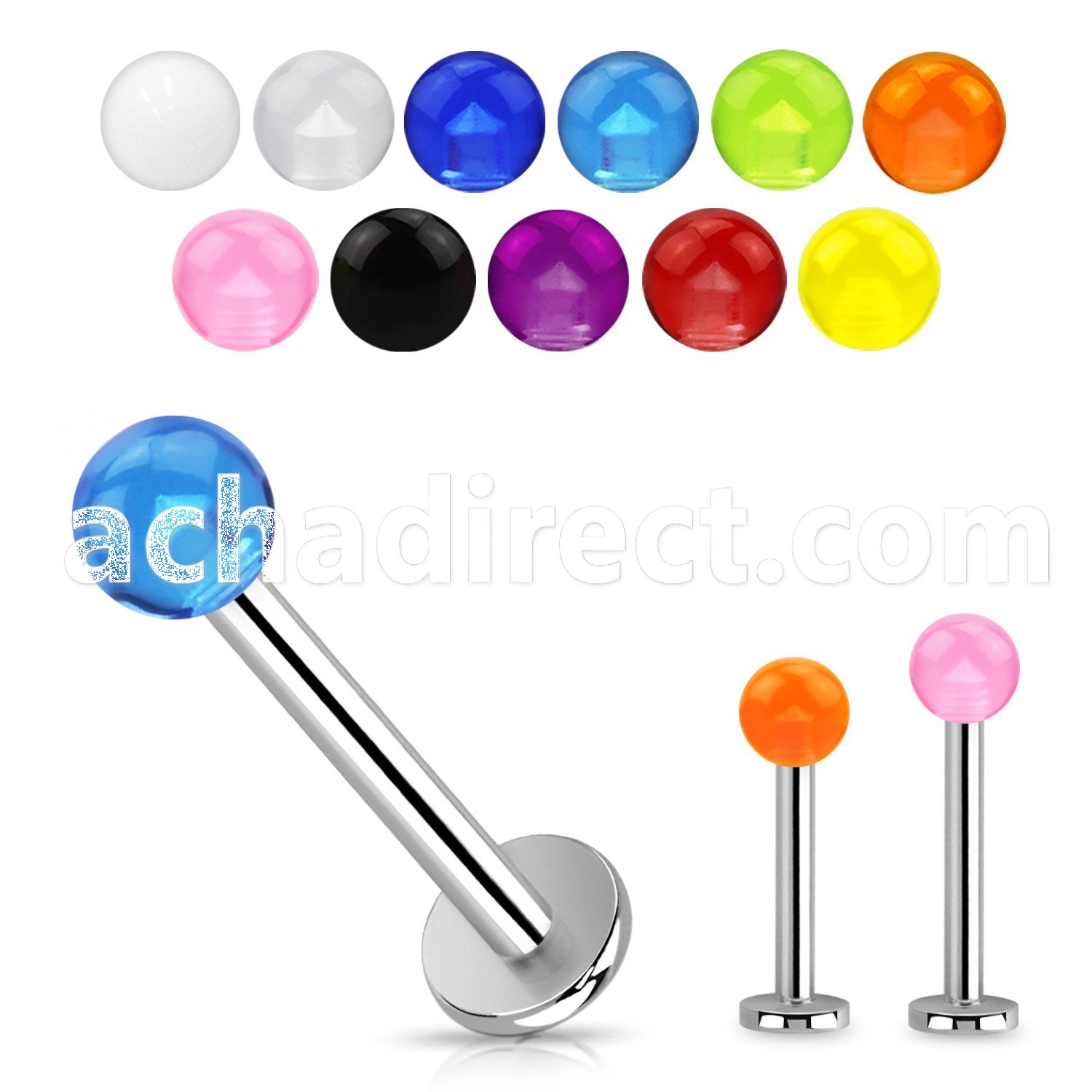 316L Steel Labret with Acrylic UV Ball