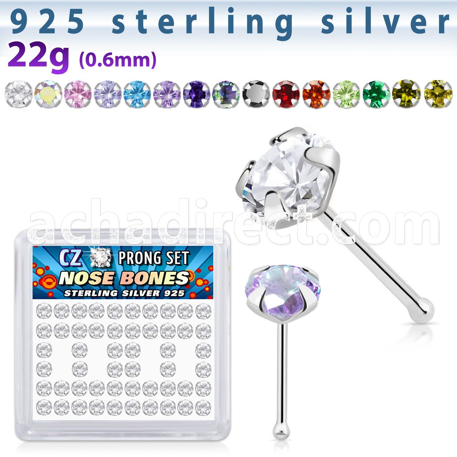 5. nbczbxc box of silver nose bones with 2mm round prong cz