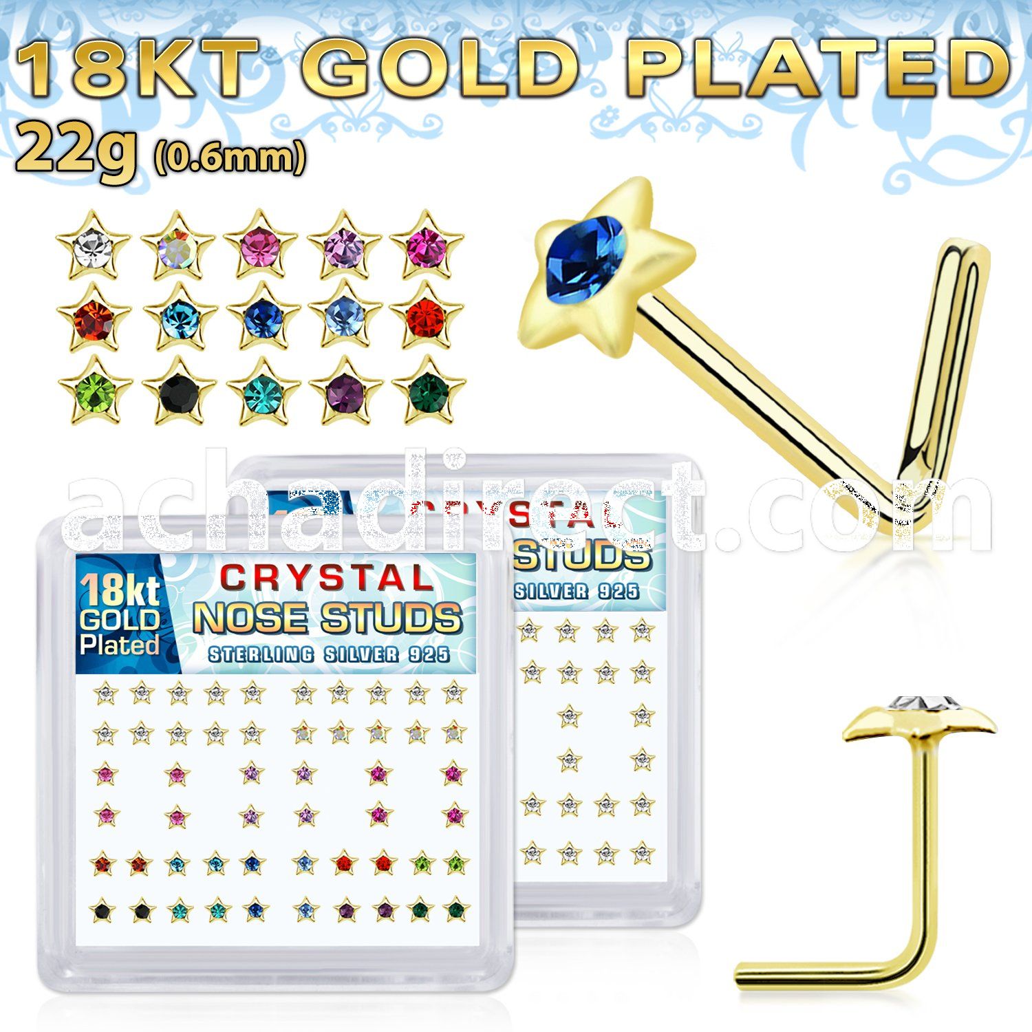 8. bxsr2mg 18k gold plated silver nose bones color star