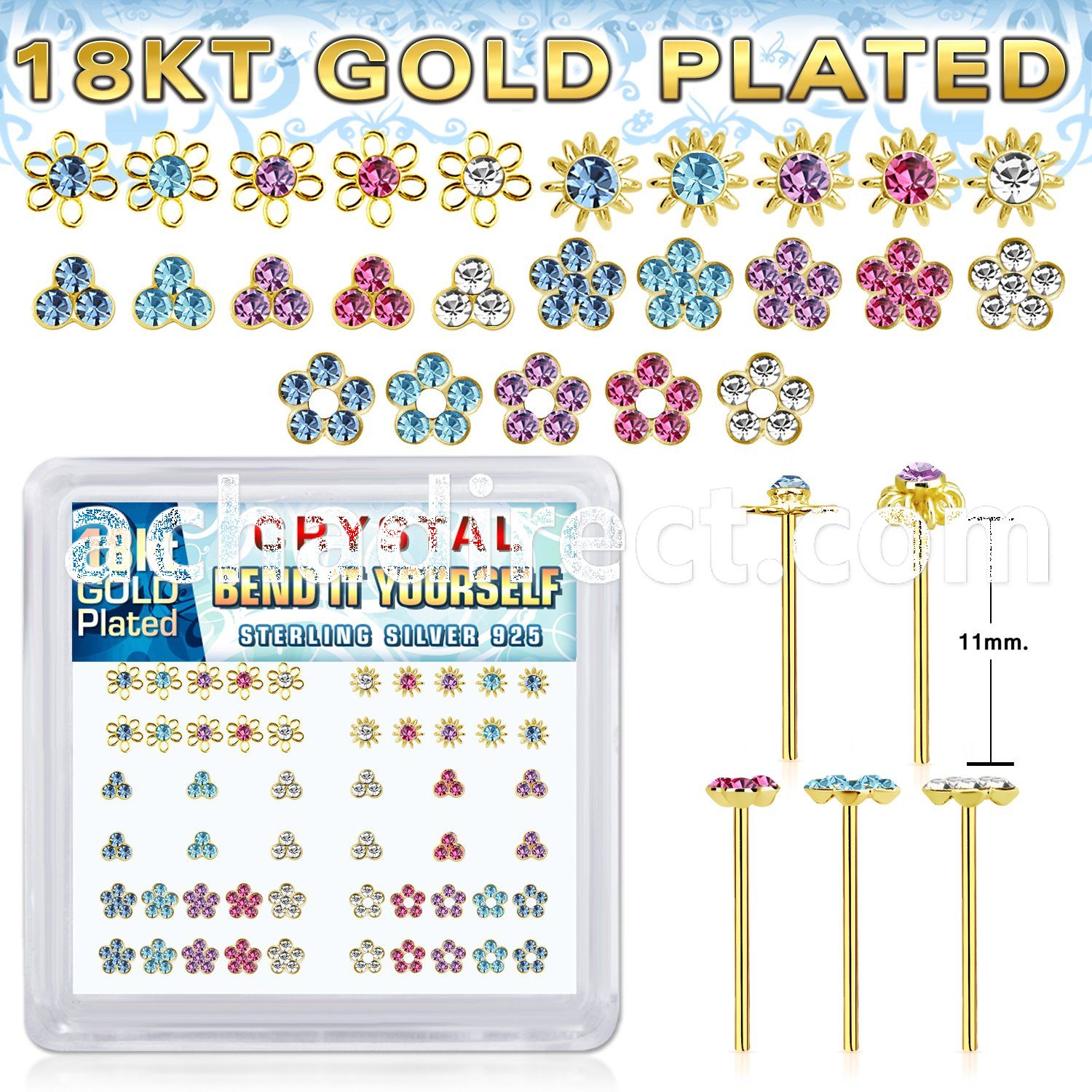 18k Gold Plated Silver "Bend it Yourself" Nose Studs Color