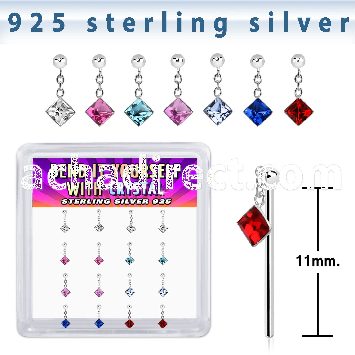 Silver "Bend it Yourself" Nose Studs Square Crystal, Box