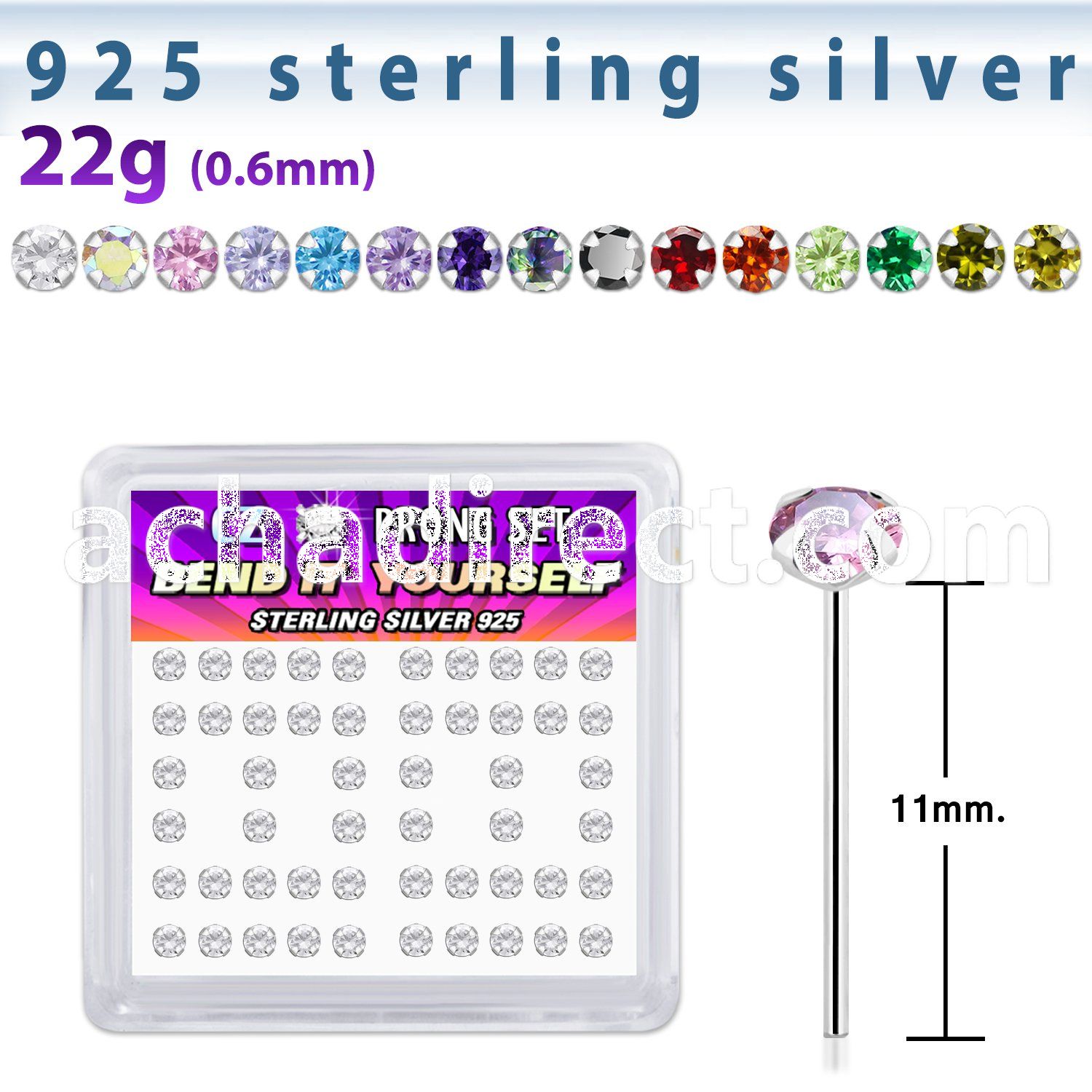 9. nyczbxm silver bend it nose studs w assorted color prong cz