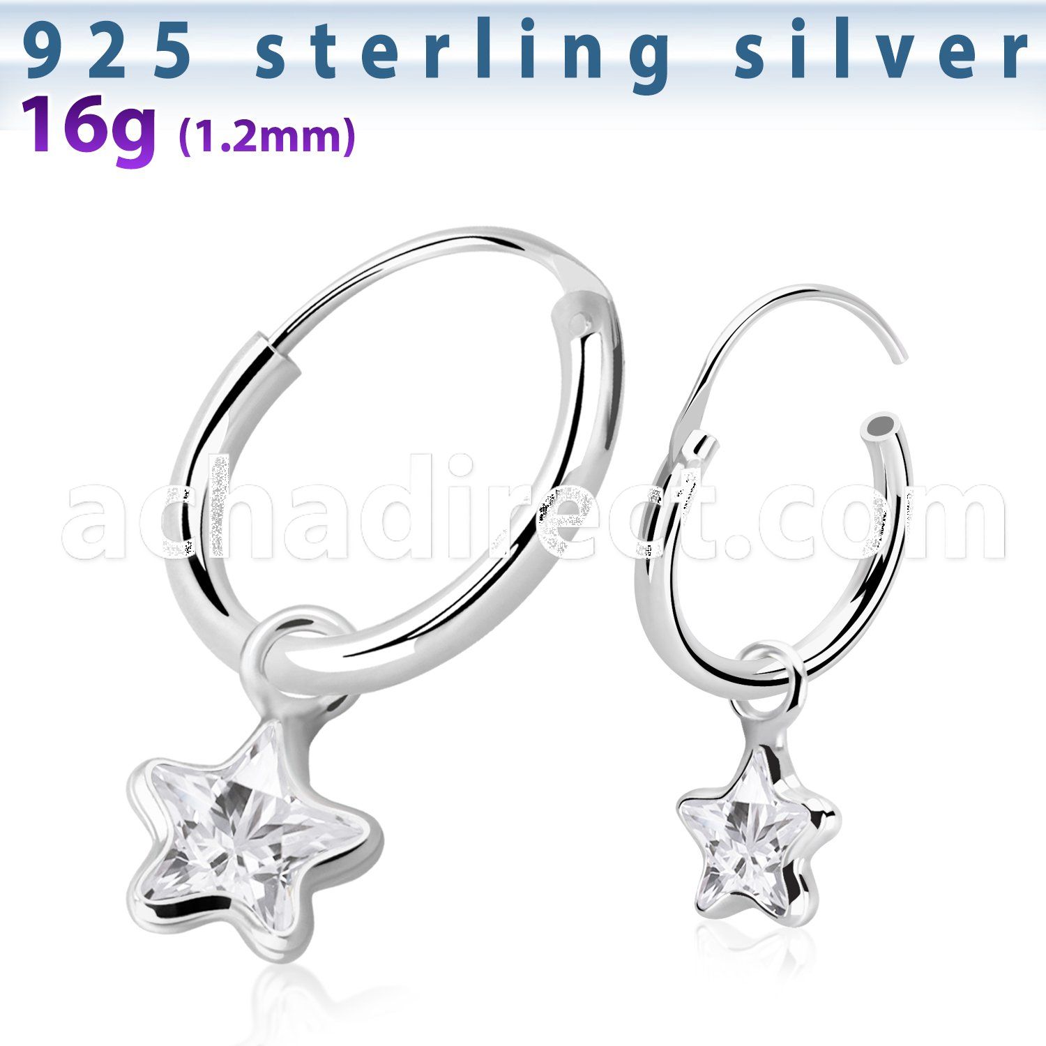 Silver Helix Hoop Earring with Dangling Star Shape CZ Stone