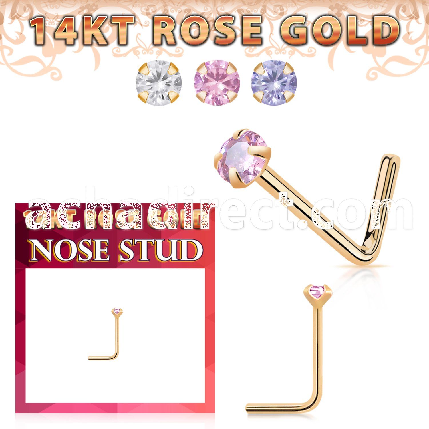 14k Rose Gold Nose Stud with Prong-set Round CZ Stone