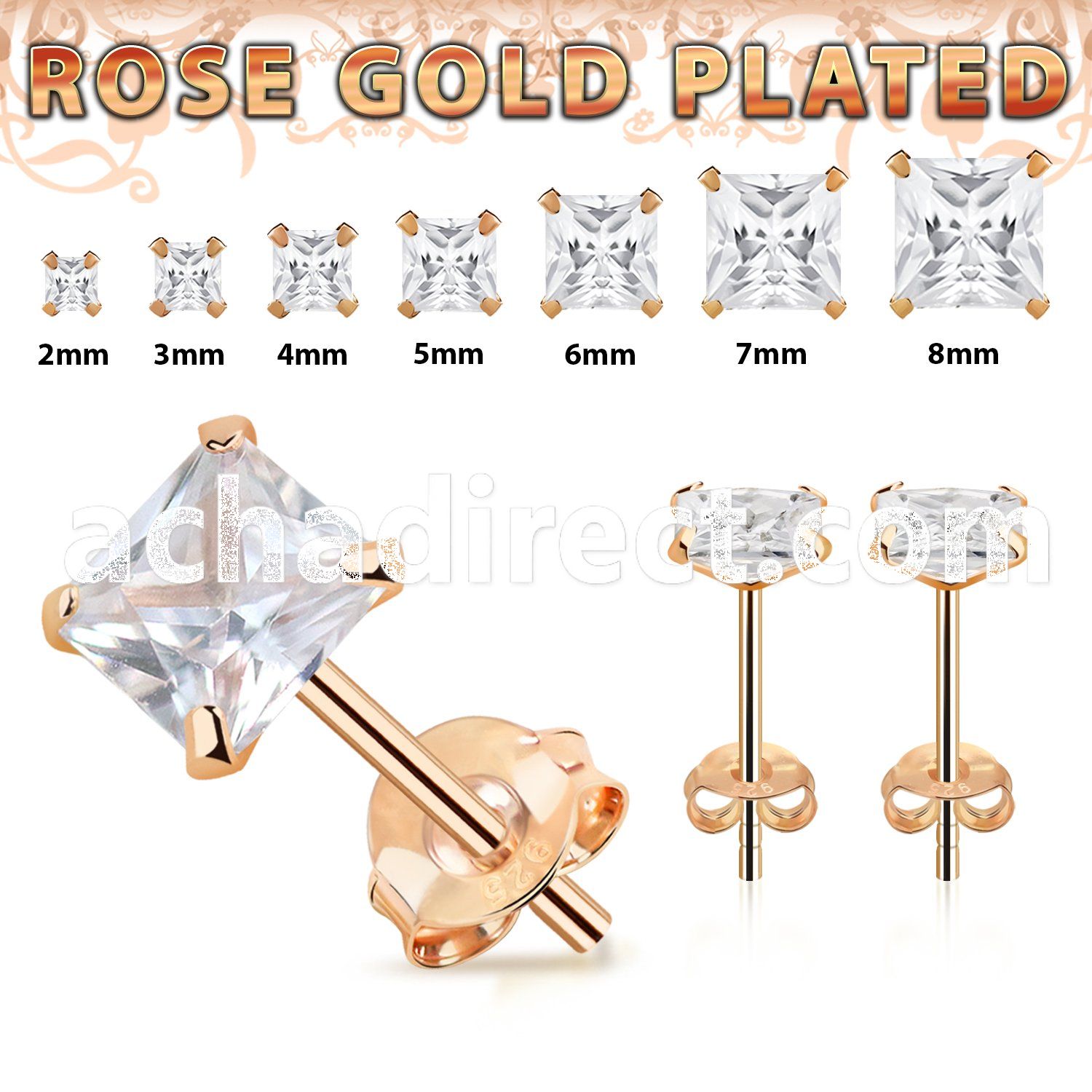 One Pair Rose Gold Plated Silver Ear Studs Clear CZ Stone