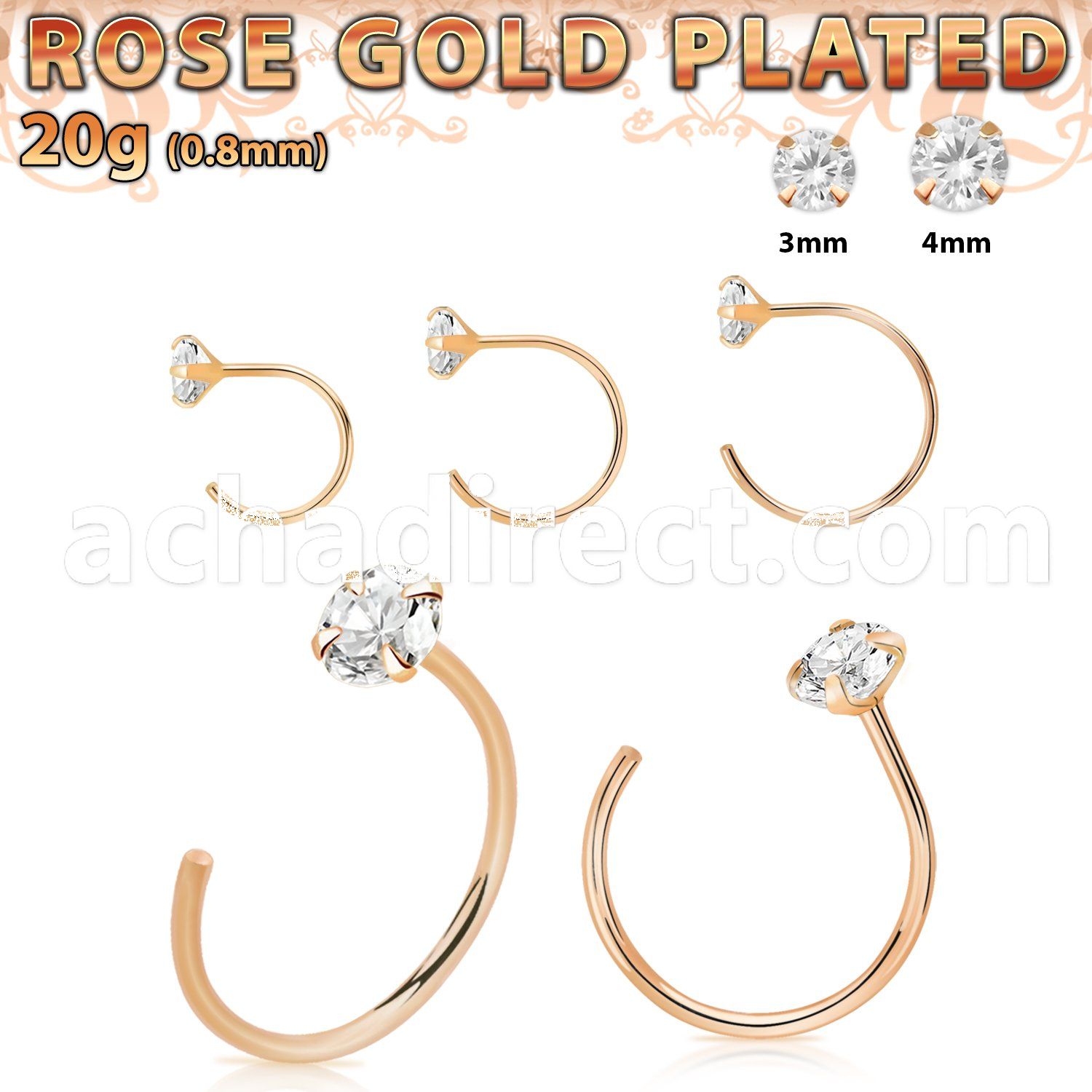 7. dnsm177 box 24 rose gold plated silver nose rings w 2mm cz top