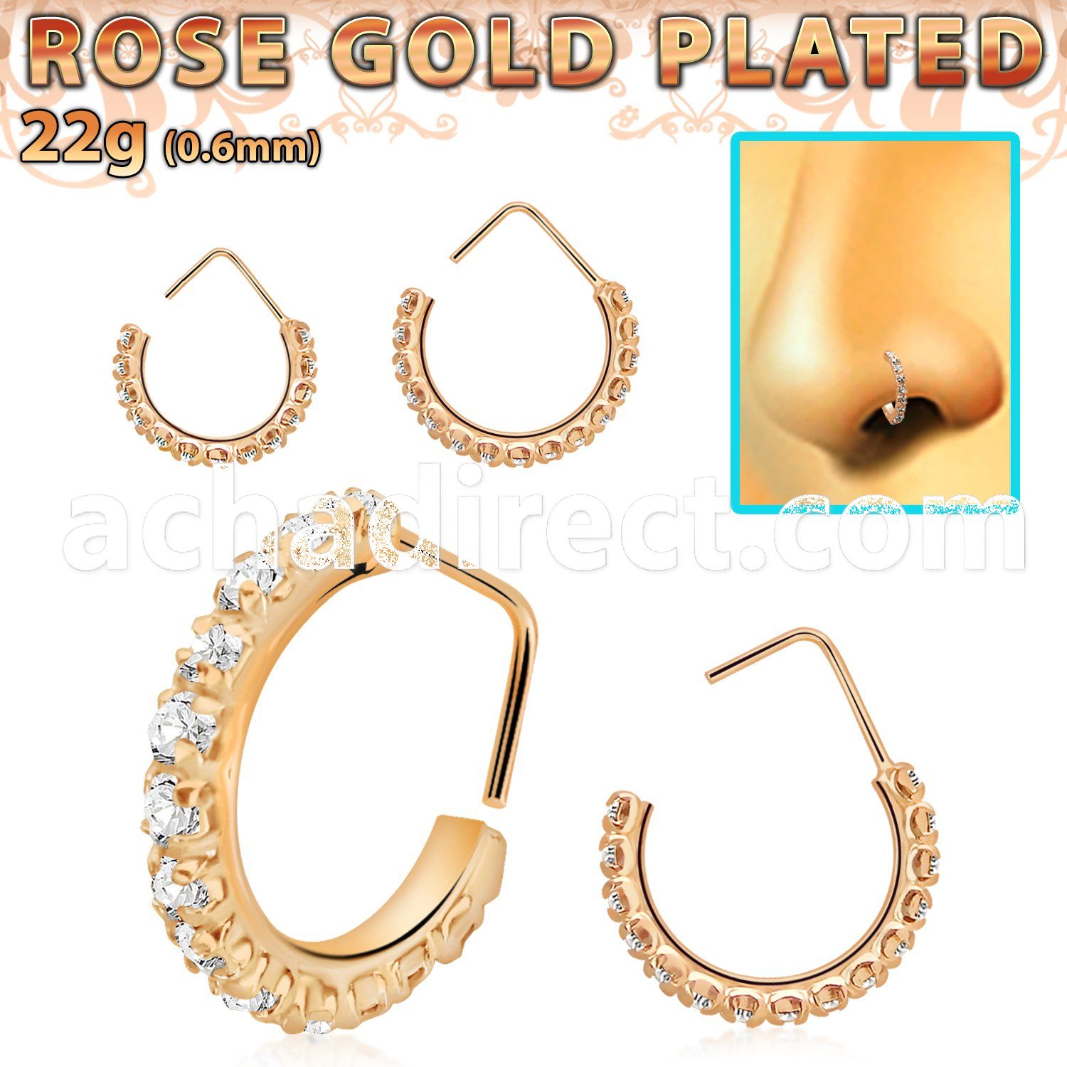 5. rssp6xc box w rose gold plated silver nose stud w 1 25mm crystal