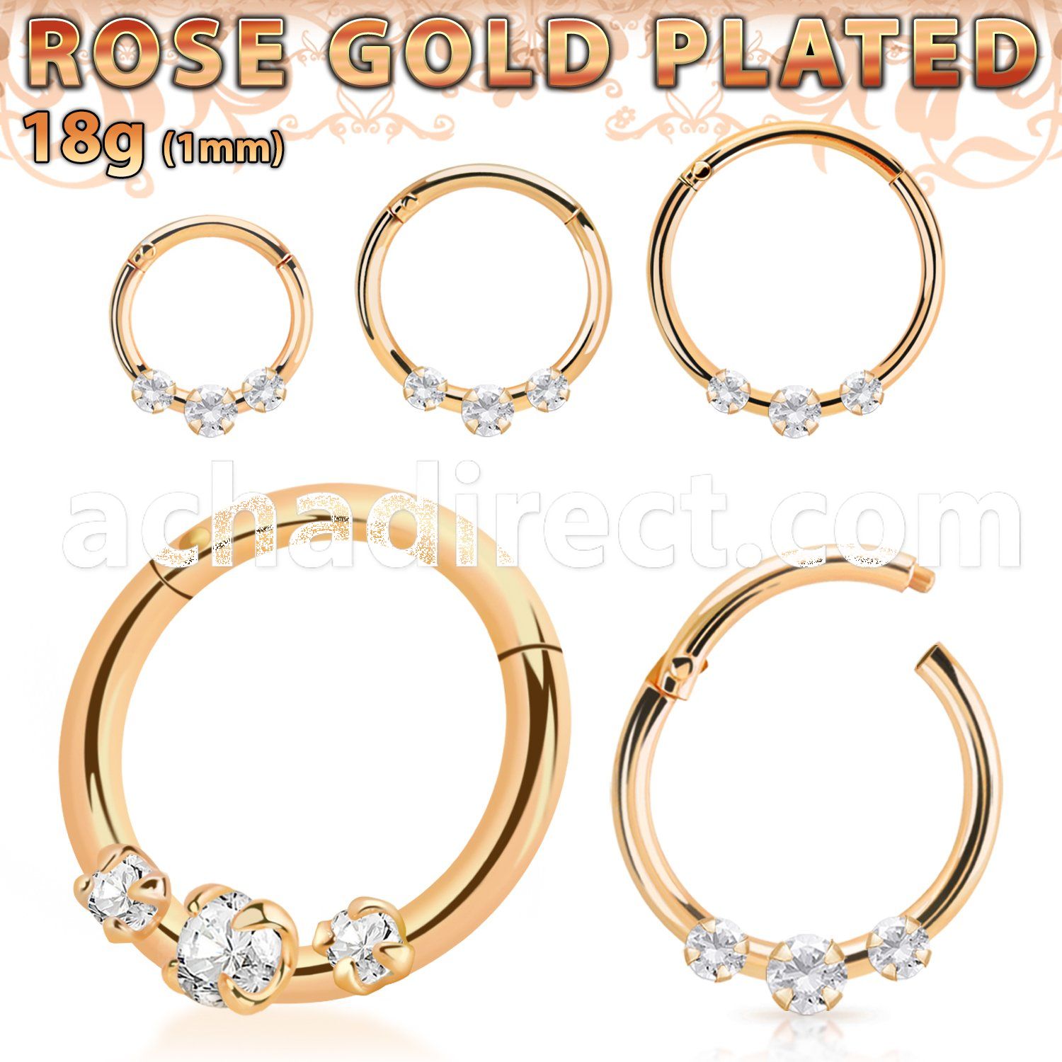 Rose Gold Plated 925 Silver Hinged Segment Ring with CZ