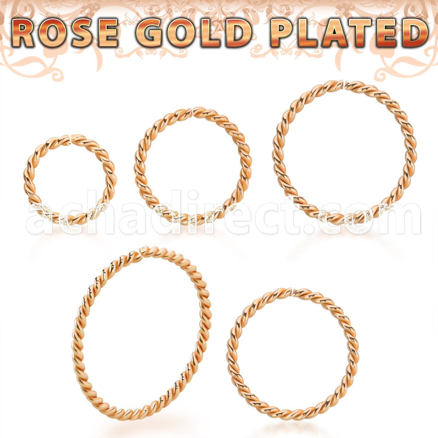 Rose Gold Plated Silver Seamless Nose Ring 20g Twisted