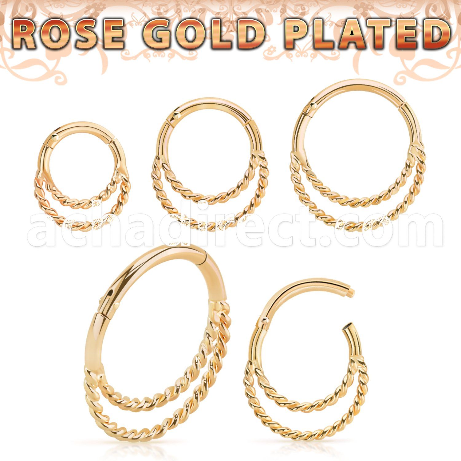 Rose Gold Plated 925 Silver Hinged Segment Twisted Wire Ring