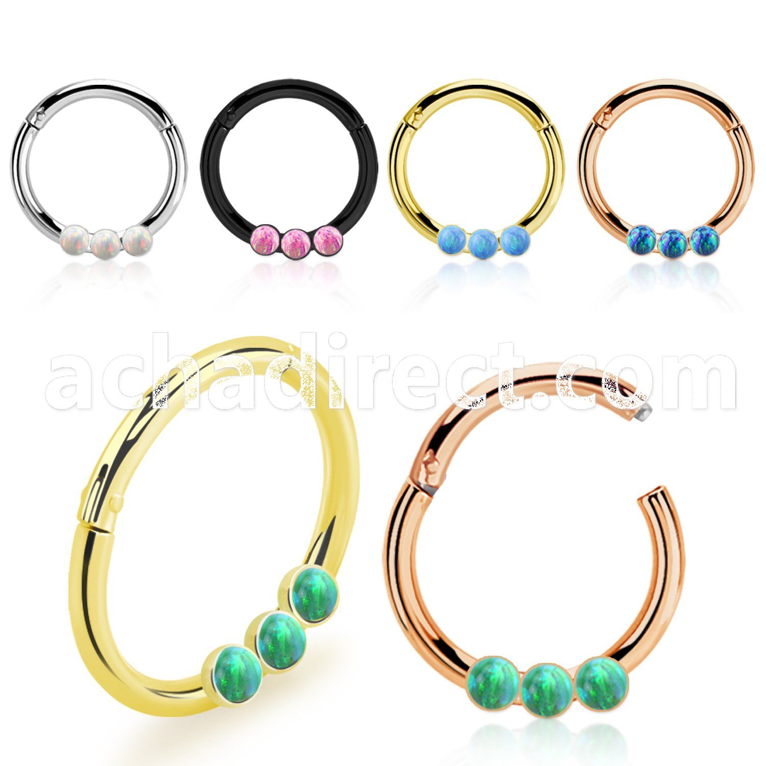 High Polish & Anodized Steel Hinged Segment Ring with Opal