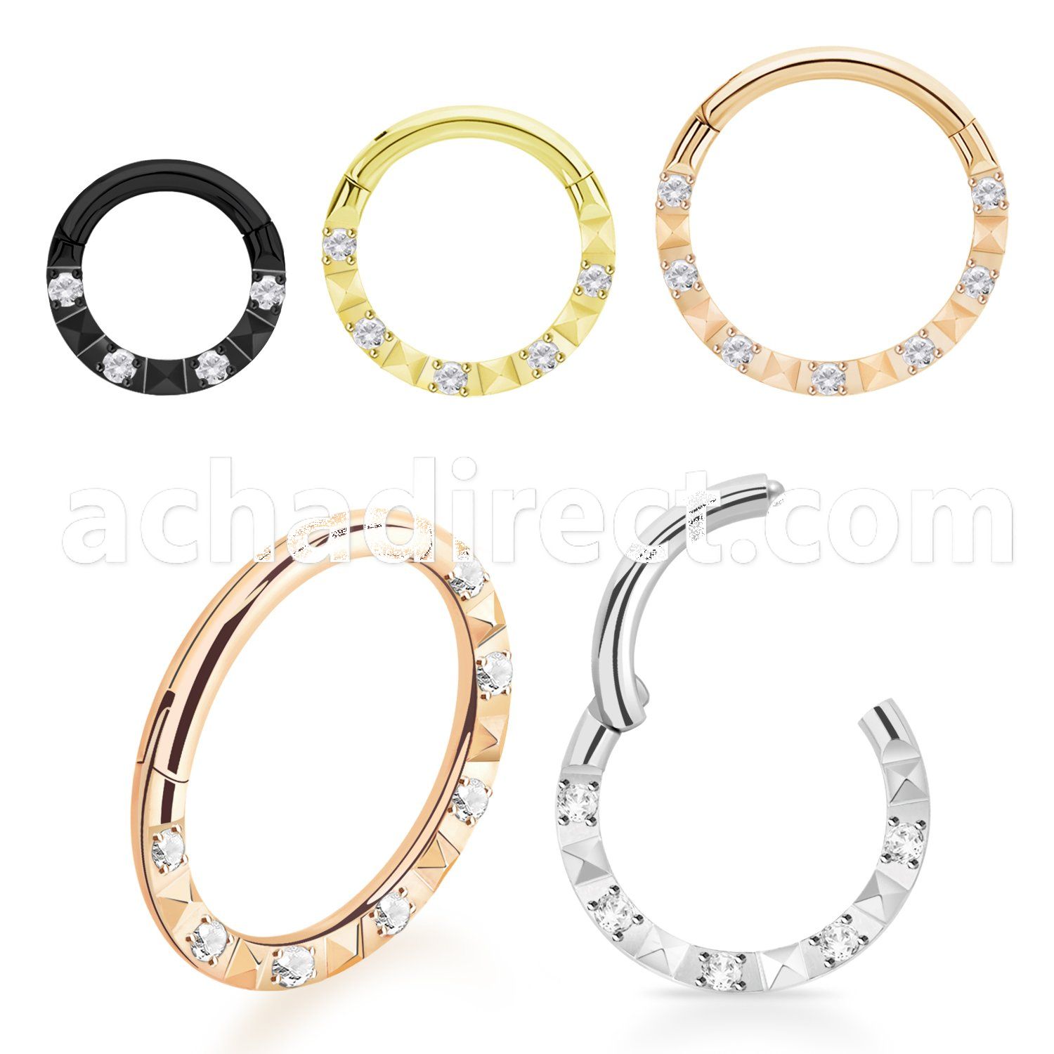 High Polish Steel PVD Plated Hinged Segment Ring Pave Set CZ