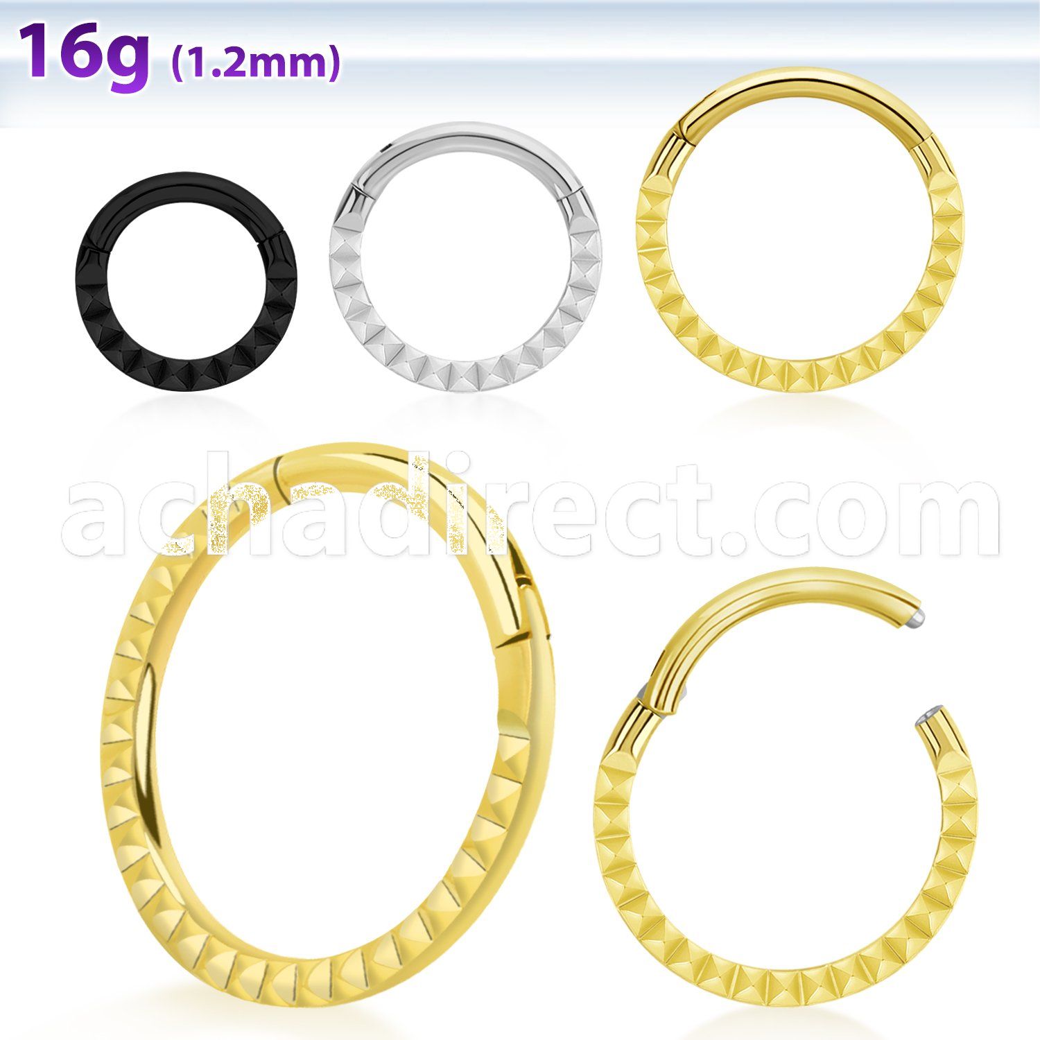 High Polish and PVD Steel Segment Ring Pyramid Pattern