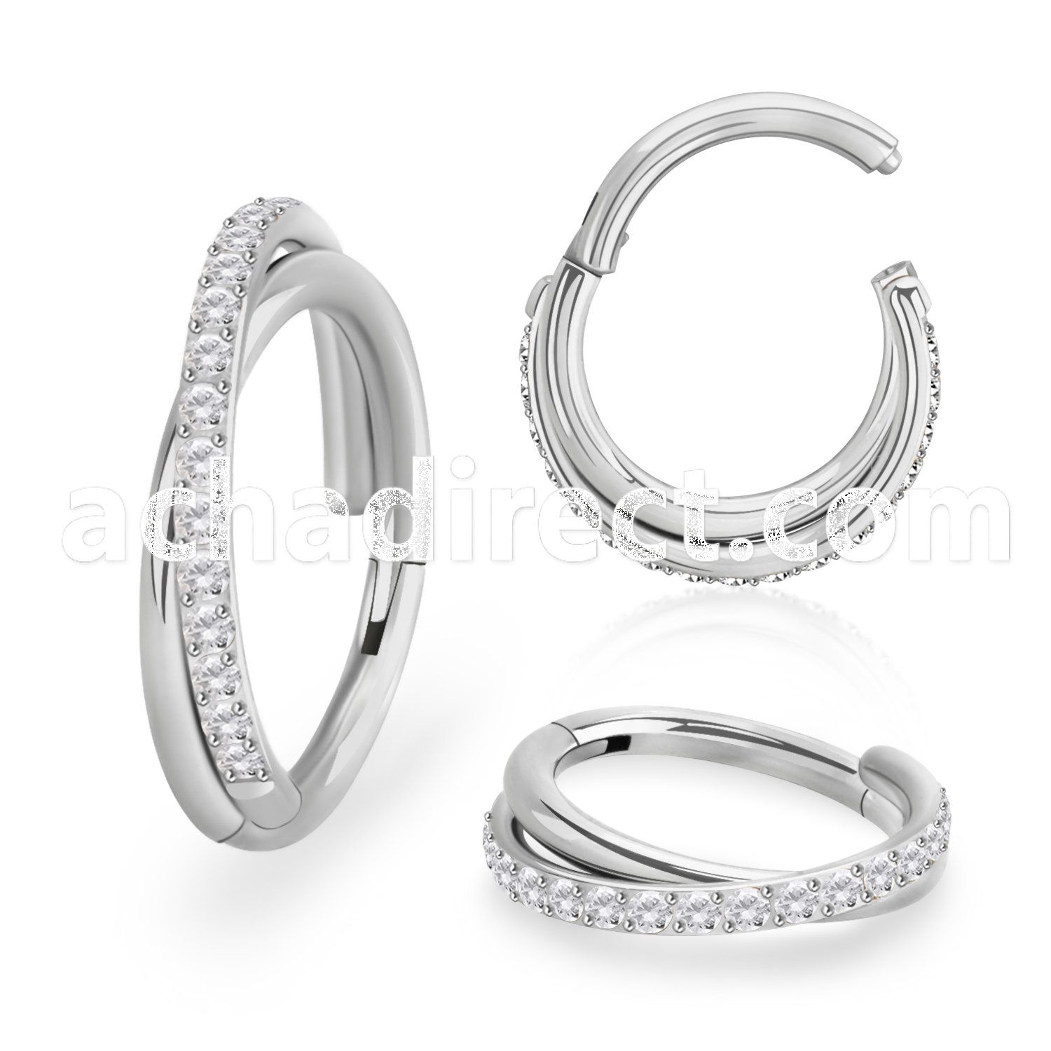 High Polished Steel Hinged Segment Ring, Cross Bridge CNC CZ
