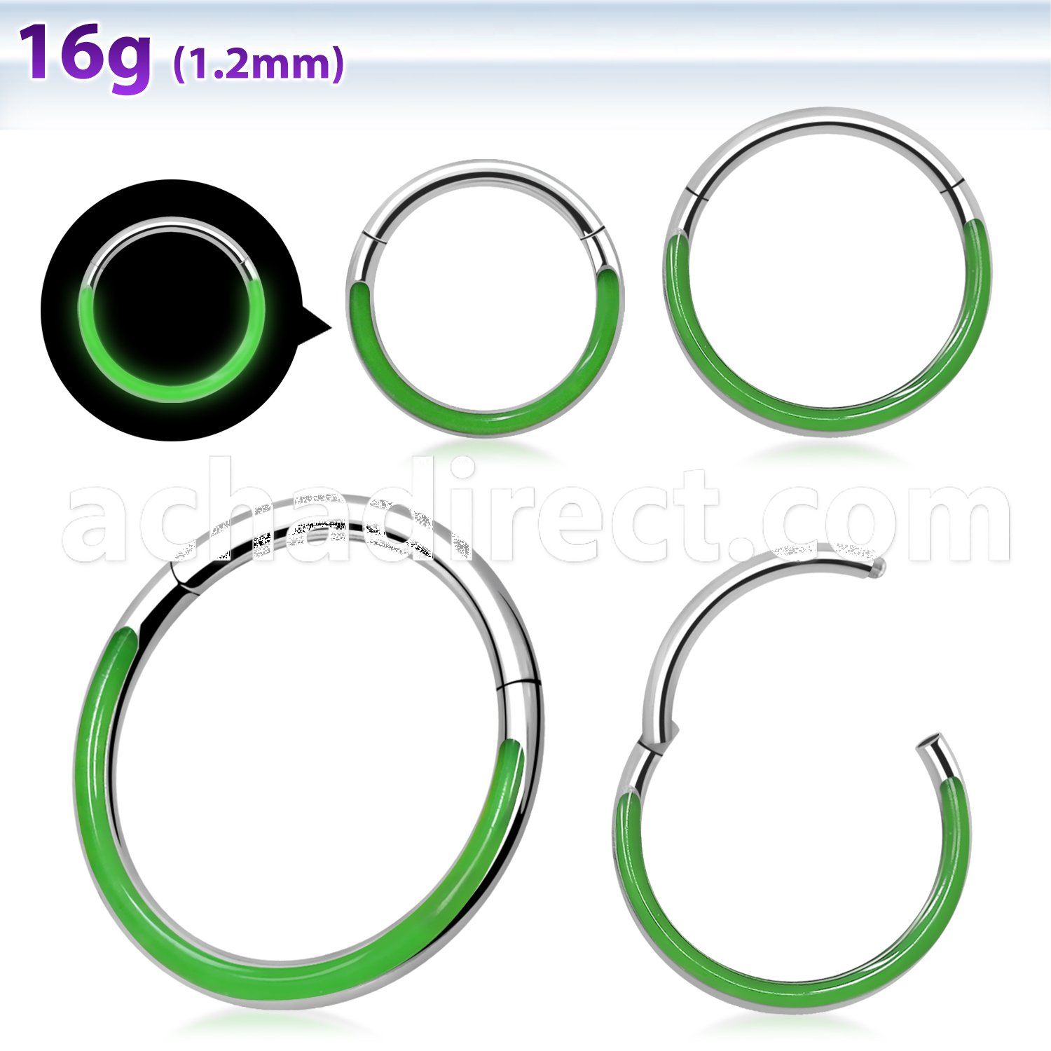 Surgical Steel Hinged Segment Ring with Green Enamel at Side