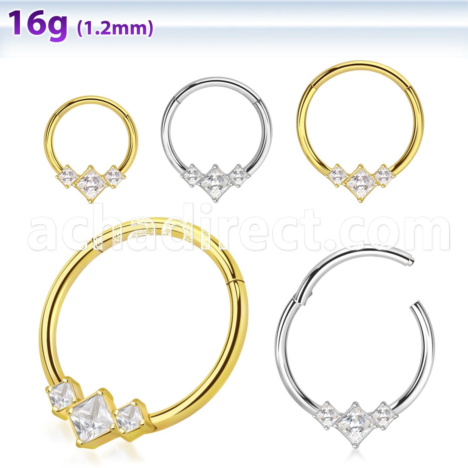 High Polish and PVD Steel Hinged Segment Ring Square CZ