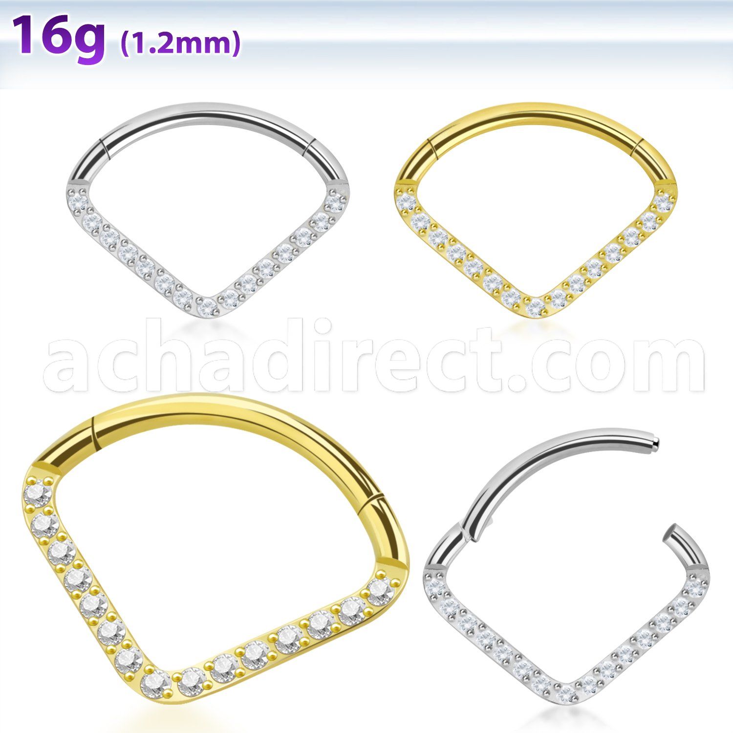 High Polish and PVD Plated Steel Hinged Segment Ring with CZ