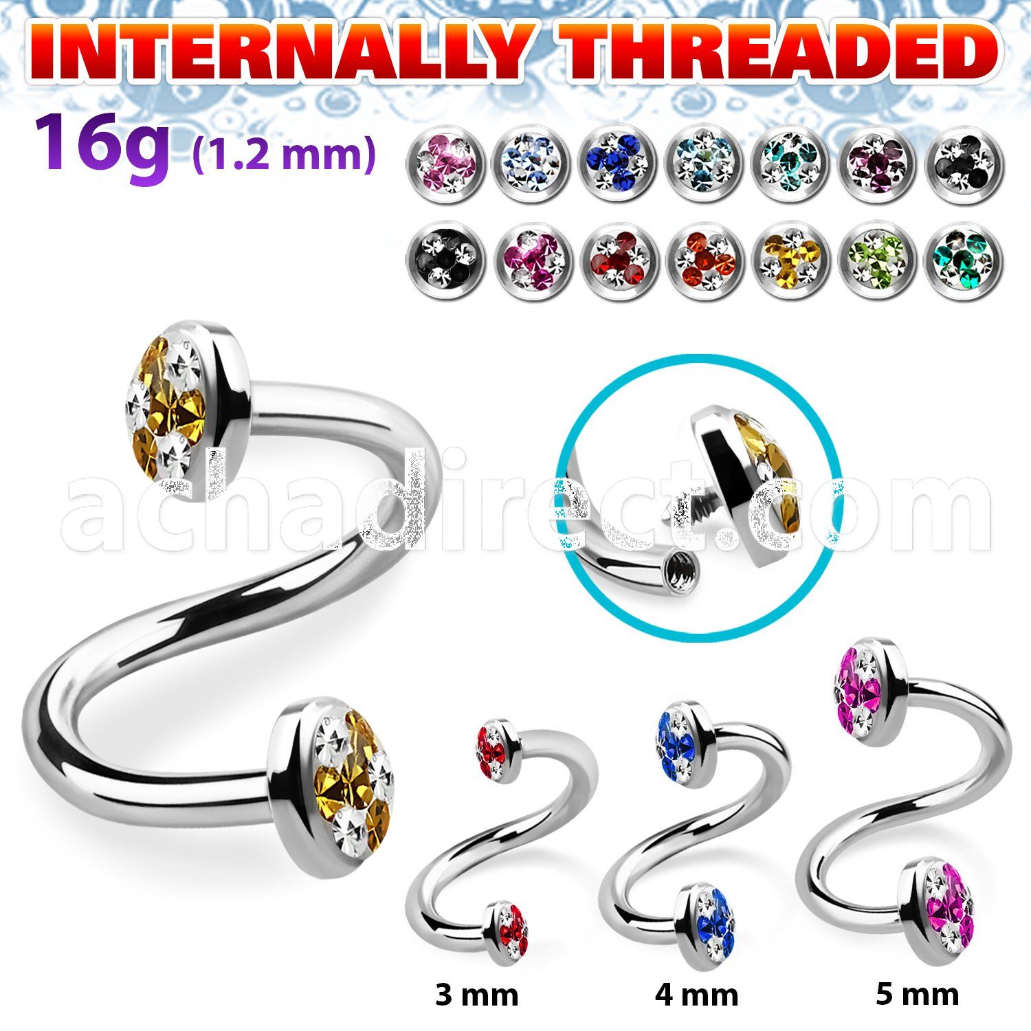 Surgical Steel Internally Threaded Spiral with 3mm to 5mm Ferido Glued Multi Crystals with a Tri Star Design