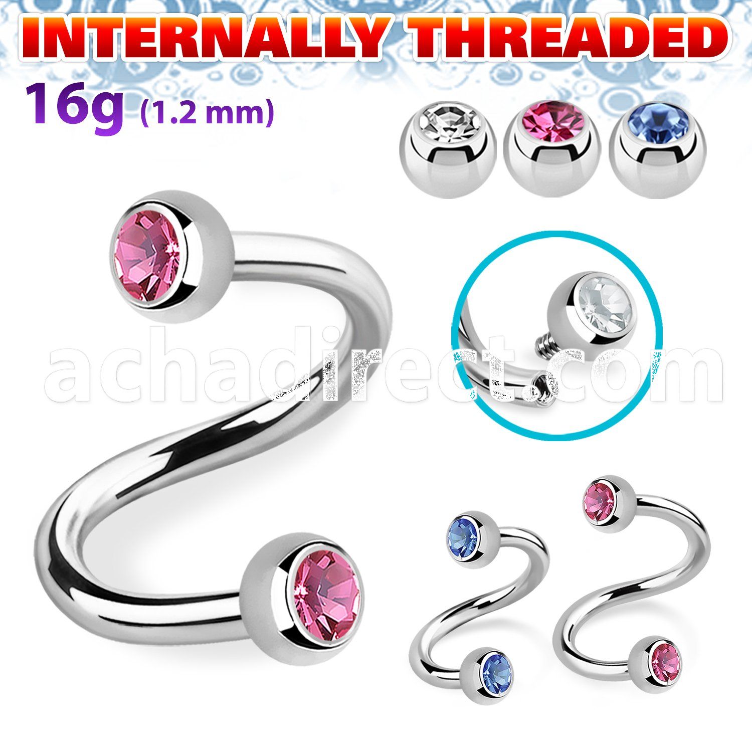 Surgical Steel Internally Threaded Spiral with 3mm Bezel Set Jewel Balls