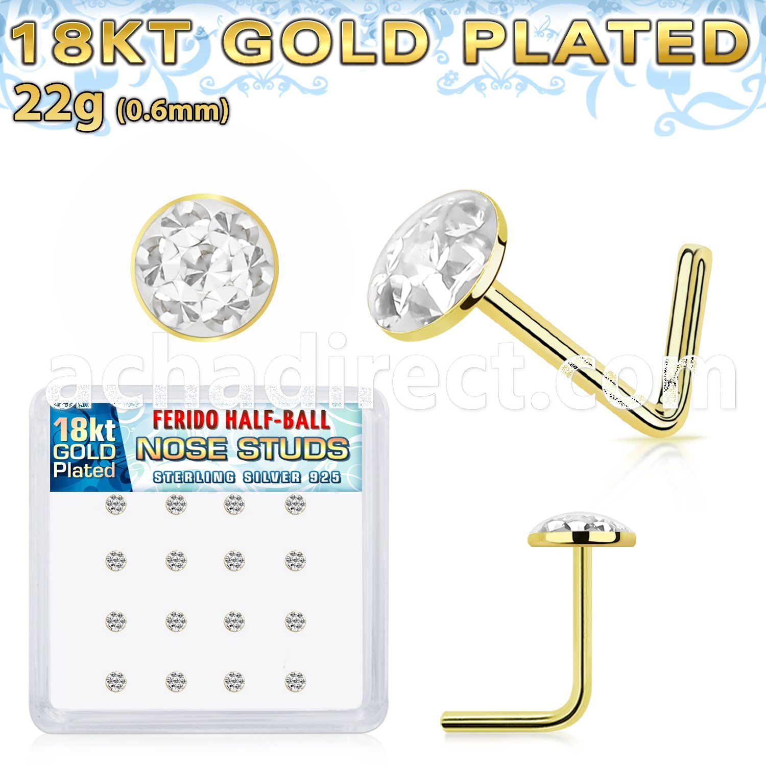 18k Gold Plated Silver Nose Studs with Ferido Tops in Box