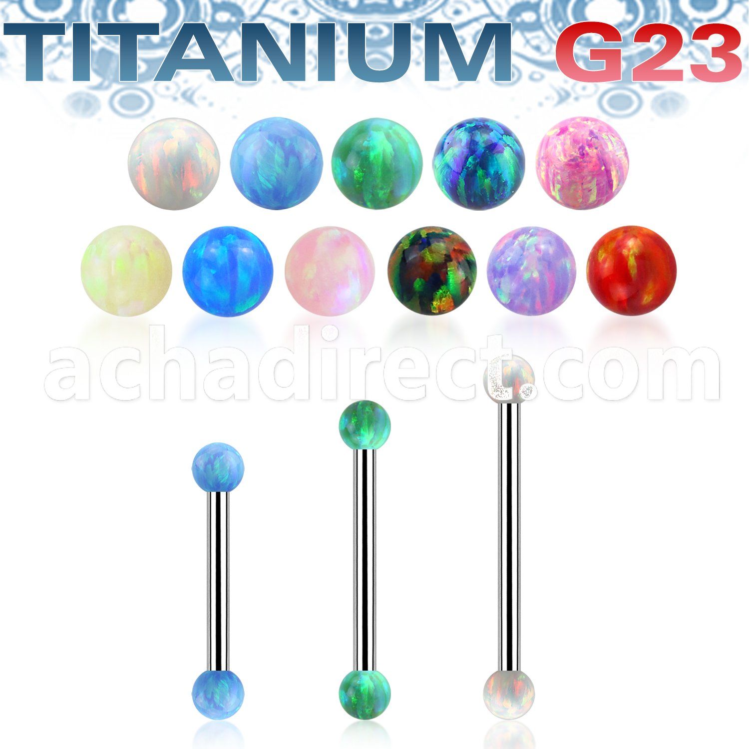 8. uinop5 titanium g23 industrial barbell 5mm synthetic opal balls