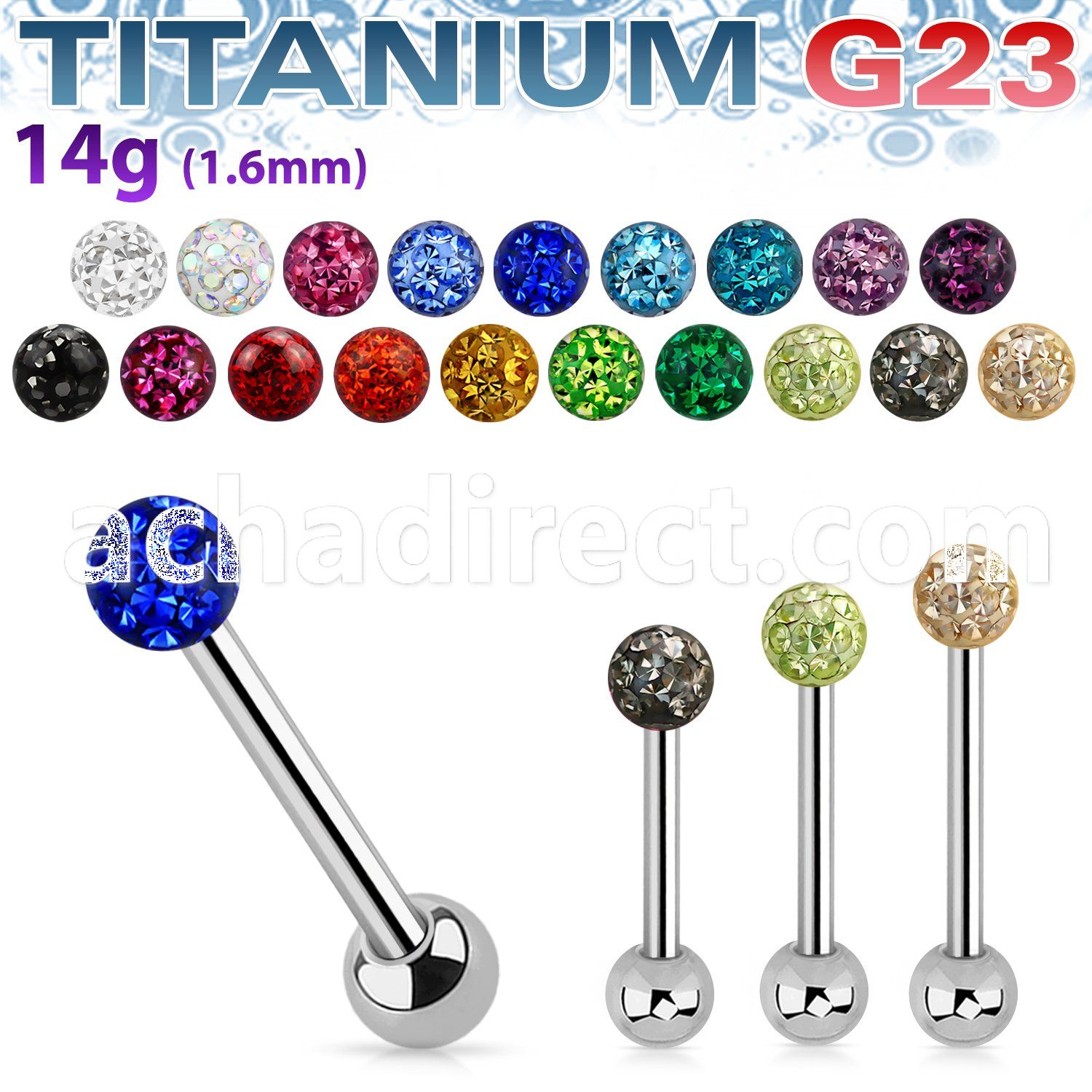 5. bbfr6 316l steel tongue barbell with 6mm ferido multi crystal