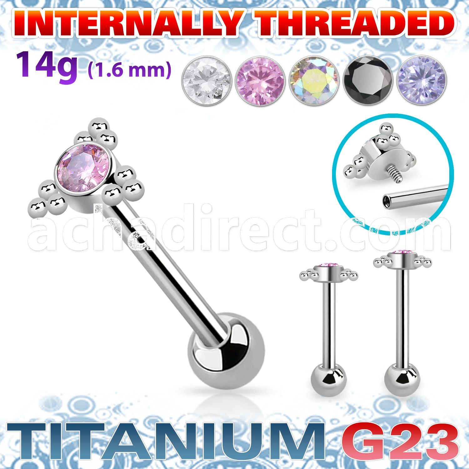 7. ubbc3 titanium g23 tongue barbell with 6mm multi jewel